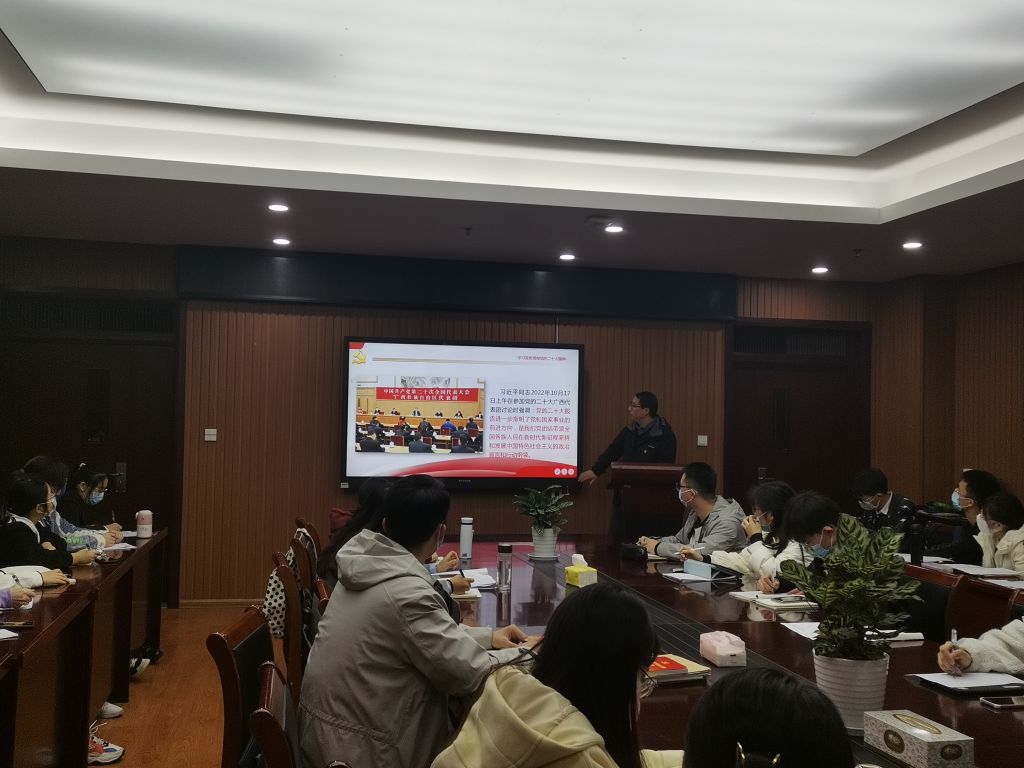 党委书记汪俊武为化学系本科生第一党支部、研究生第一党支部全体党员讲授“学习宣传贯彻党的二十大精神”专题党课,化学系本科生第一党支部书记吴钰濛主持。