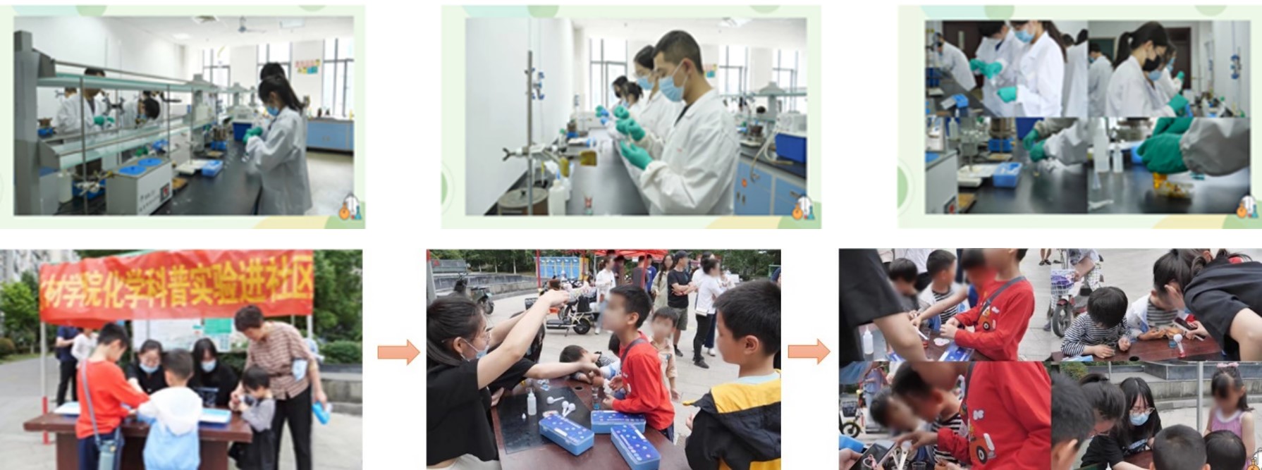 图3大学生化学实验与“变色珍珠”化学实验进社区活动照片