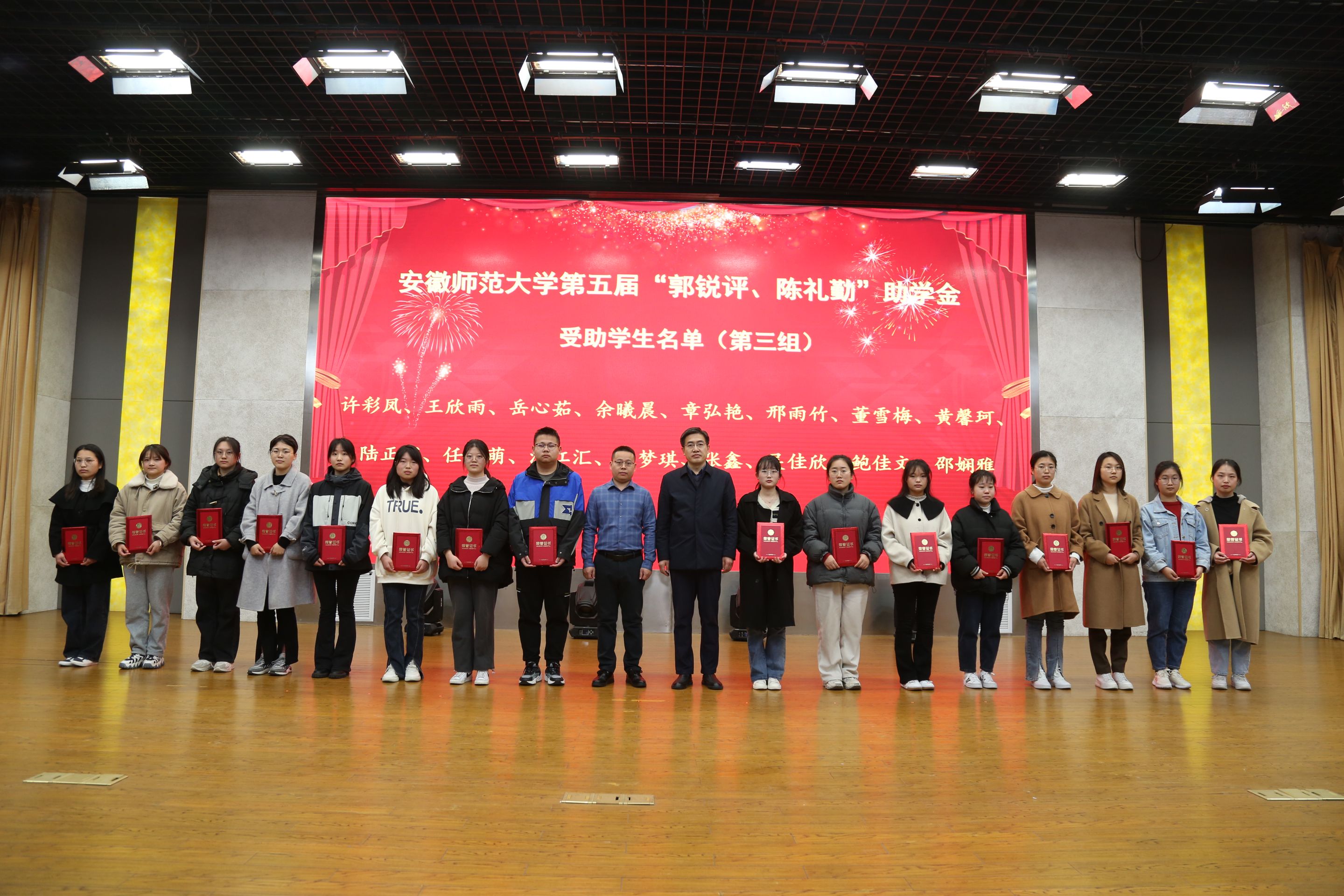 第五届“郭锐评、陈礼勤”奖助学金的决定》,与会嘉宾们分5个批次共15组向209名获奖、受助学生颁发奖助学金获奖证书。