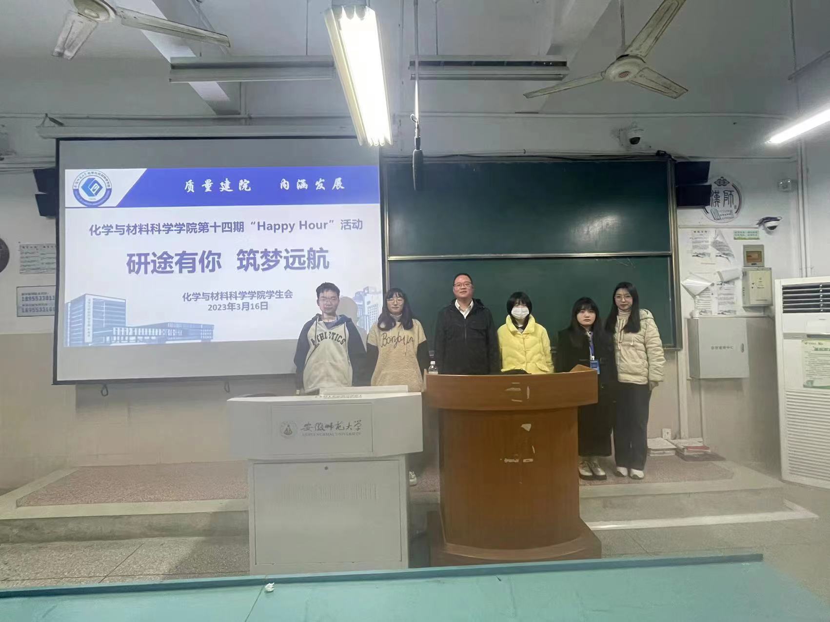 依托“Happy hour”品牌系列活动,顺利举办此次学科竞赛与科研经验分享会,本次活动提供了专业教师与学生面对面的机会,帮助学生们答疑解惑的学习交流平台,助力化材学子向阳、向善、向上生长,为学生今后的学科竞赛指引新方向,营造出浓厚的科技创新与学科竞赛的氛围。