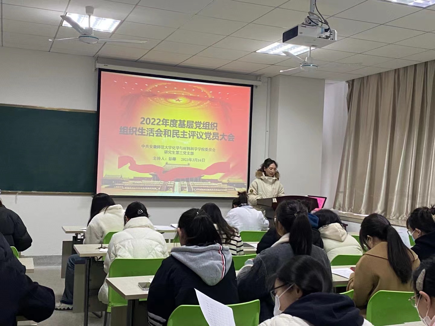 党委的统一部署,研究生各党支部于近期开展2022年度组织生活会暨民主评议党员,各支部全体党员、预备党员参加会议,会议由研究生各党支部书记主持,绿帽奴
