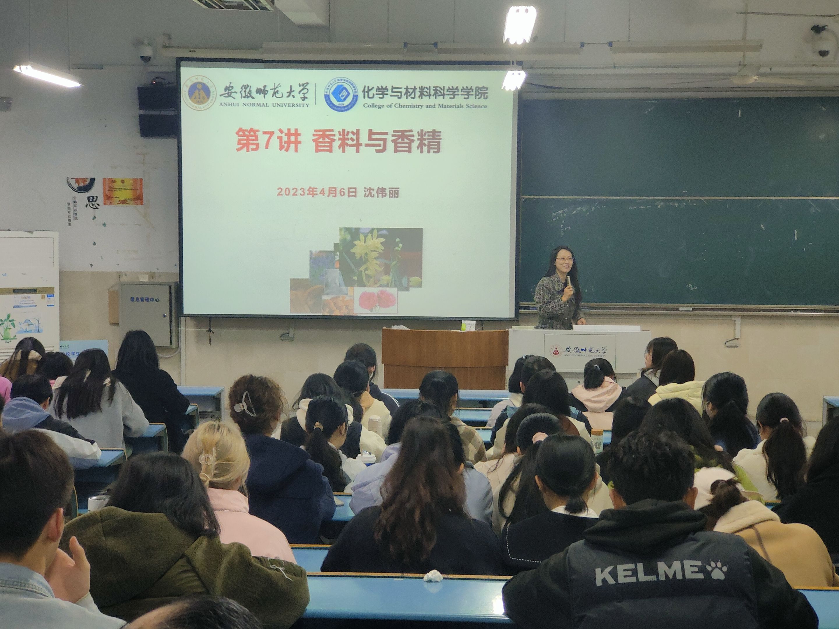 沈伟丽老师在行知楼2010308教室进行本科教学公开课。本次课程为化妆品化学校选课,授课主题为香料与香精,绿帽奴