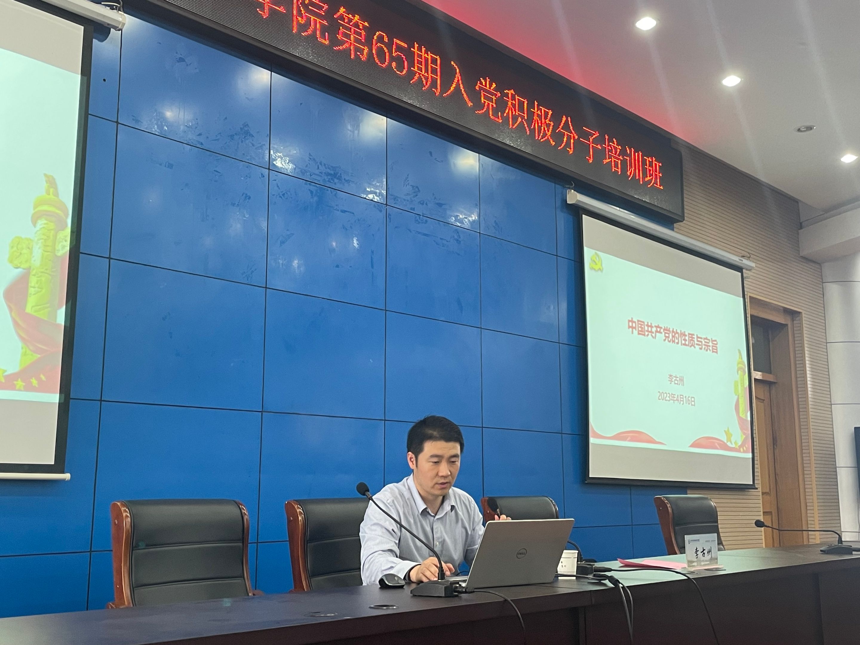 永葆性质,牢记宗旨。李古州向同学们讲授《中国共产党的性质与宗旨》。他指出,正确认识和把握党的性质,对于入党积极分子锤炼党性具有十分重要的意义。他强调,希望同学们自觉做远大理想和共同理想的鉴定信仰者和忠实实践者,切实提高坚定理想信念的思想自觉,在实际学习工作中践行全心全意为师生服务的宗旨。