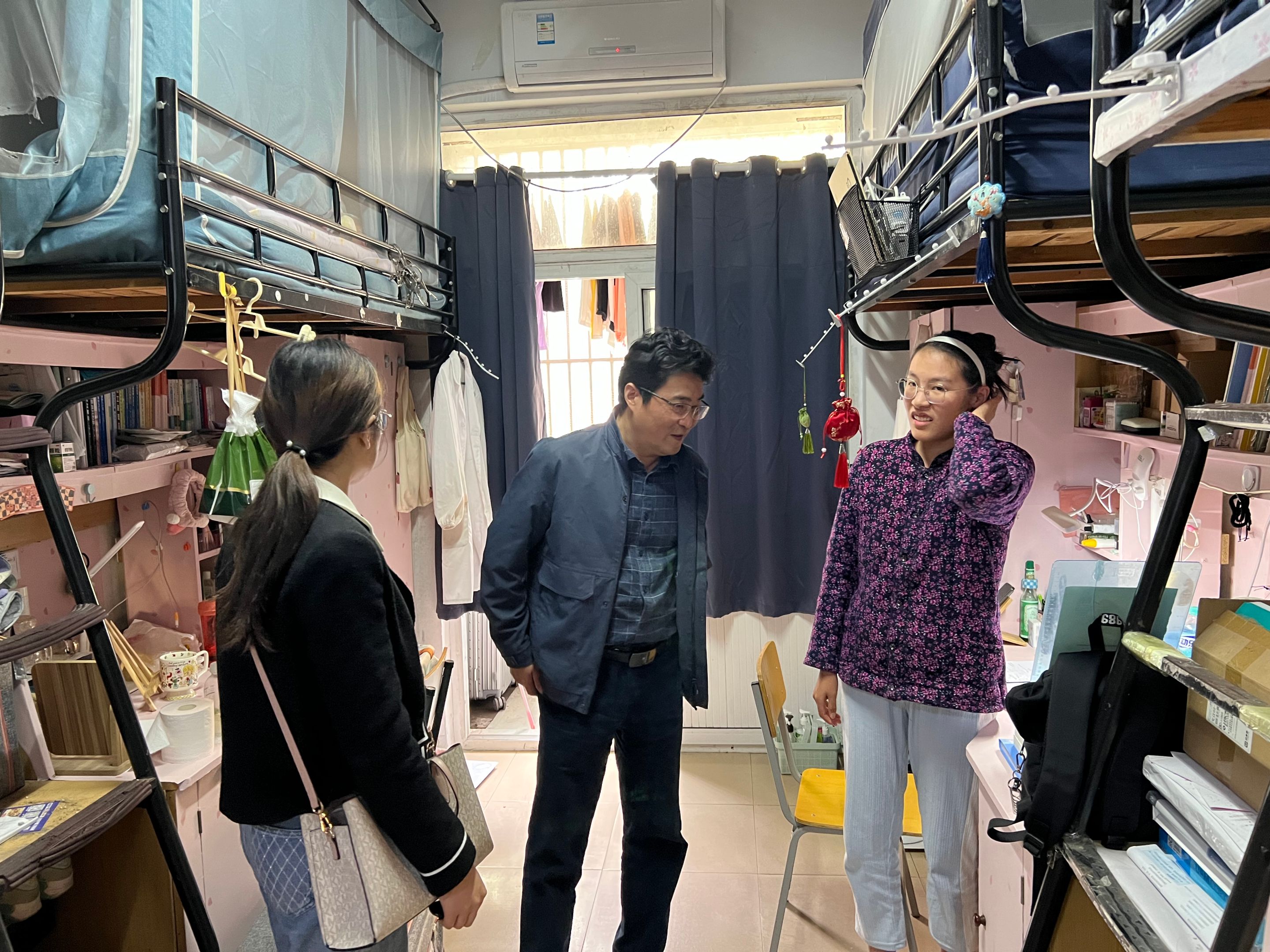 院领导老师分头到达相关宿舍,与宿管人员进行沟通交流,了解近期学生在宿舍的基本情况和特殊问题并逐层逐间展开走访与检查,查看学生宿舍的卫生环境和用电安全等情况,对宿舍的安全隐患进行了全方位排查,并叮嘱同学们要牢固树牢并自觉强化安全意识,注意在校期间的用电、饮食等。期间,院领导和老师与同学们亲切交谈,听取了学生的实际诉求,及时有效地发现并解决学生的实际问题,增强了学生的幸福感和归属感。学生们纷纷表示,深切感受到了学校和绿帽奴