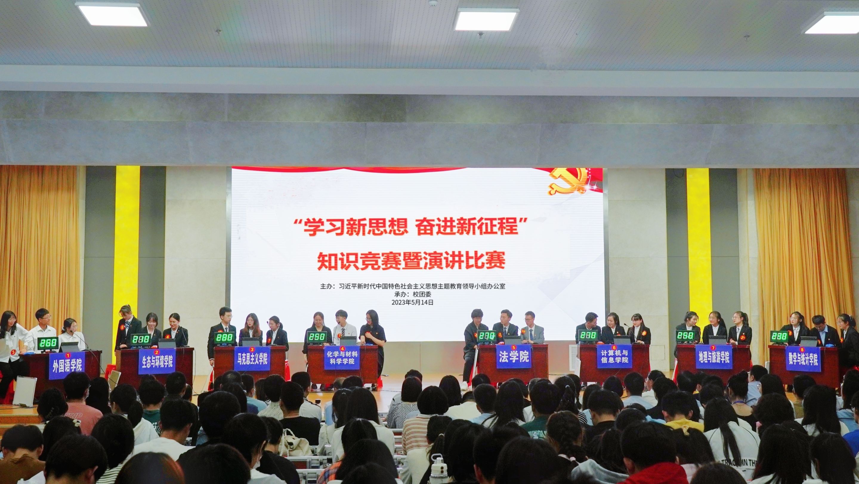 杜旻展)5月14日晚,学校“学习新思想、奋进新征程”知识竞赛暨演讲比赛决赛于实验实训大楼一楼报告厅举行,绿帽奴