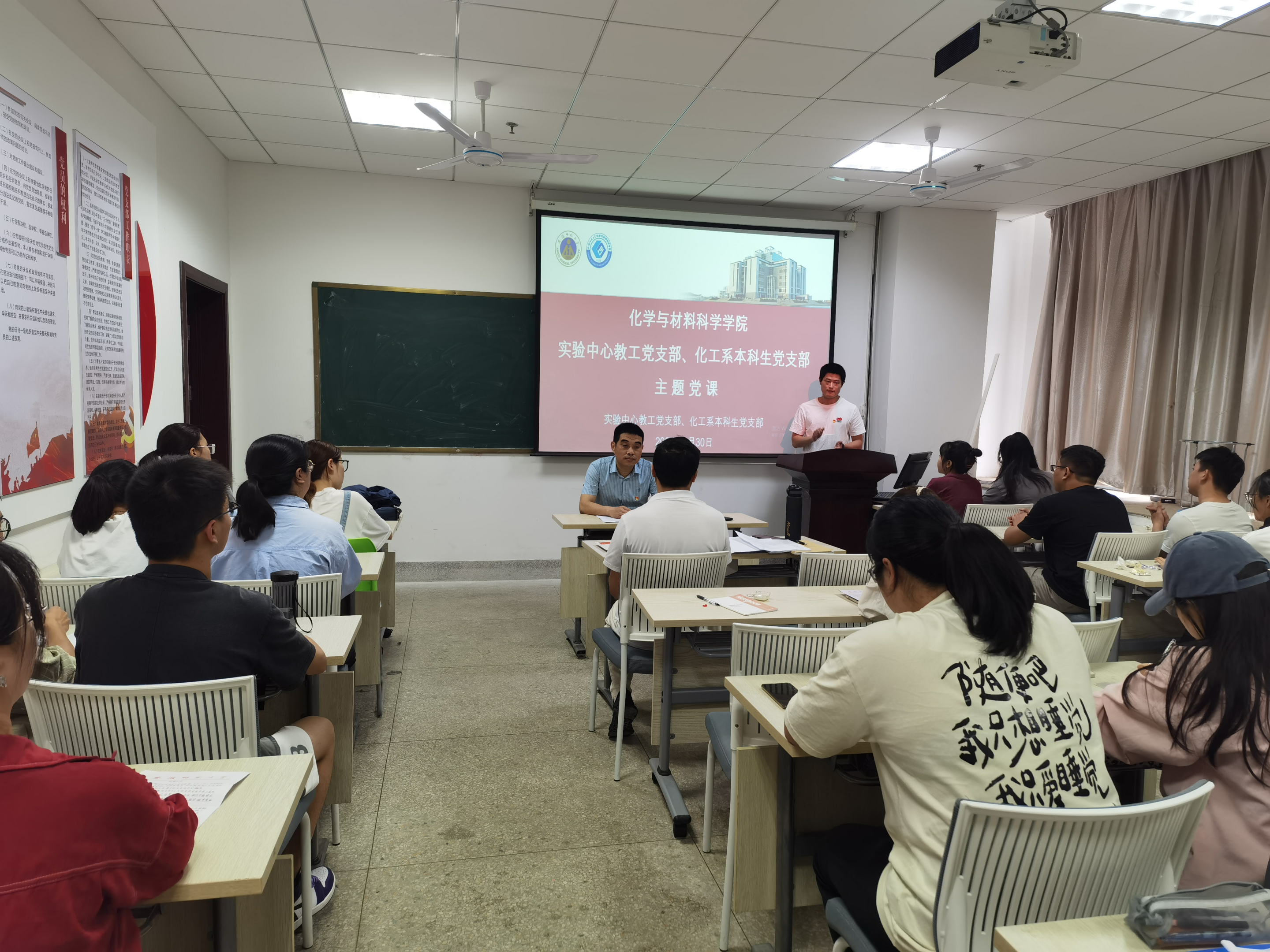 党委委员、副院长王波涛在礼勤楼838会议室为实验中心教工党支部和化工系本科生党支部讲授题为“学习贯彻习近平新时代中国特色社会主义思想暨实验室安全管理工作主题教育”的专题党课,会议由化工系本科生党支部书记张浩主持。