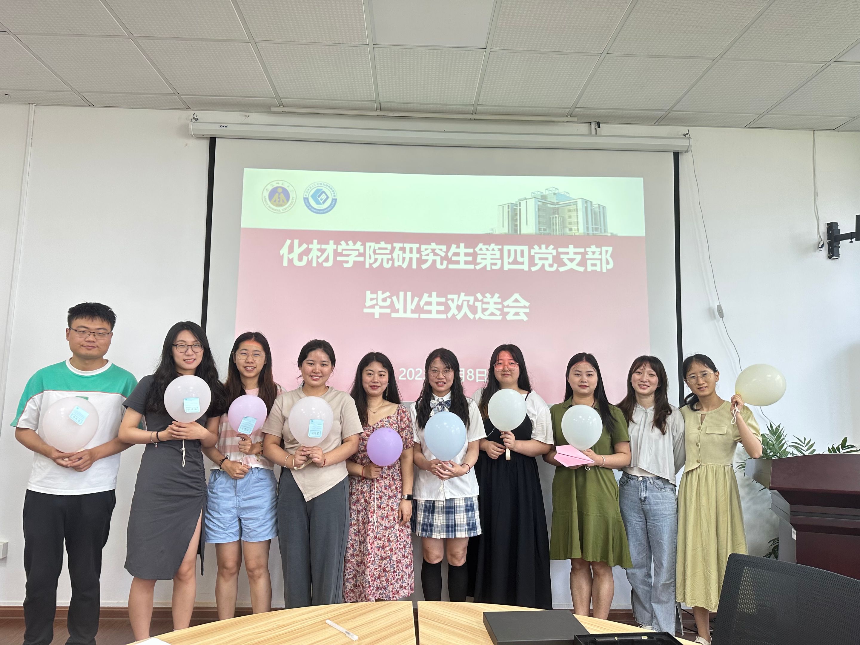 研究生第四党支部于学苑北楼9号楼205会议室举办2023届毕业生党员欢送会,研究生辅导员张薇、邱霞,毕业生党员以及2022级党员代表、入党积极分子代表参加本次活动,活动由研究生第四党支部支委胡宇阳主持。