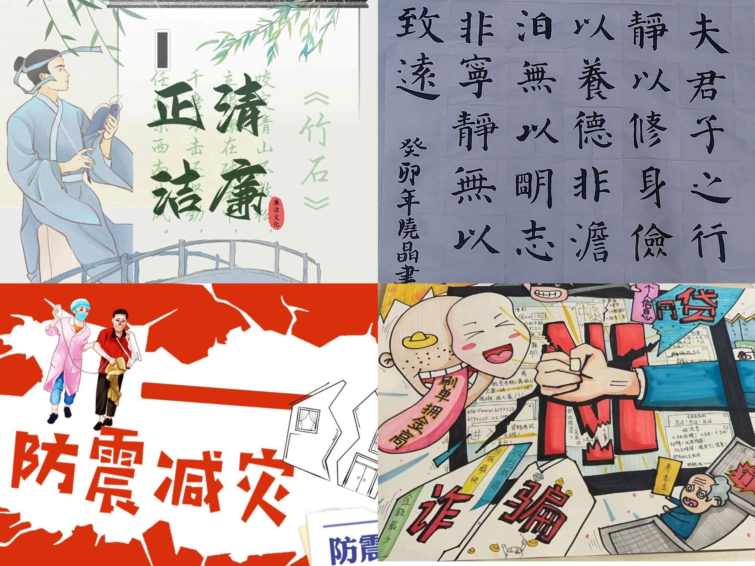 举办了汉字书写大赛、廉洁廉政海报比赛及“平安校园”微视频大赛。同学们书写时细致沉着,字体优美工整,展现出了较高的书法水平。汉字书写大赛中既提高了学生的审美能力和人文素养,增强了文化自信和爱国情怀,也充分展现了化材学子良好的精神风貌。廉洁廉政海报设计比赛,引导同学们树立正确的价值观和道德观,倡导诚实守信、廉洁奉公的精神品质,在比赛中,同学们用绘画设计的方式展现了自己对廉洁廉政的理解和践行理念。