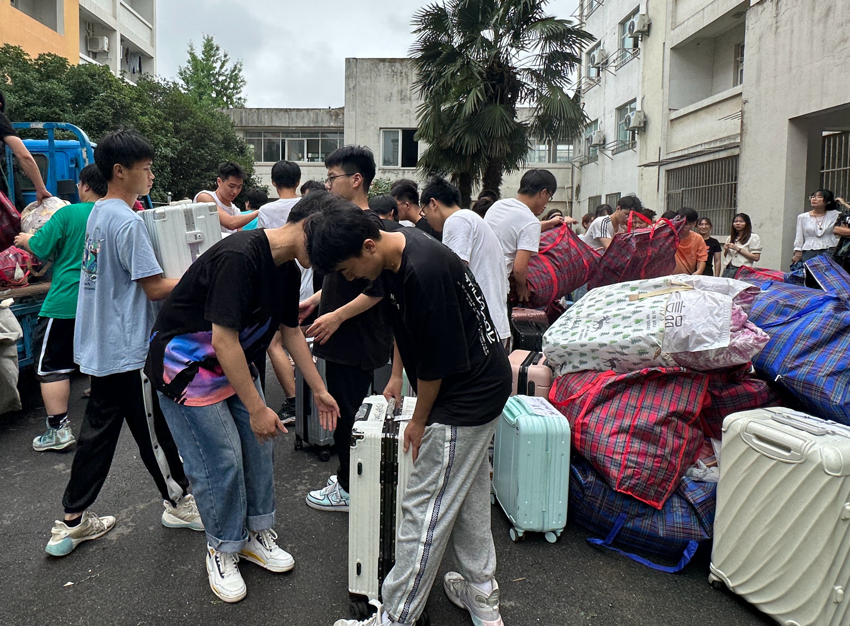 师生合力,互帮互助。现场老师自发帮助学生搬运行李,各班级学生骨干也发扬“奉献、友爱、互助”的志愿精神,团结协作,相互配合,大大提高了搬迁工作的效率。同学们将整理好的物品装入自己提前标记过的行李箱,并将其整齐有序地摆放在走廊,志愿者将行李搬下楼,运上车,并把行李搬至指定宿舍,使得整个搬迁过程安全有序,展现了绿帽奴