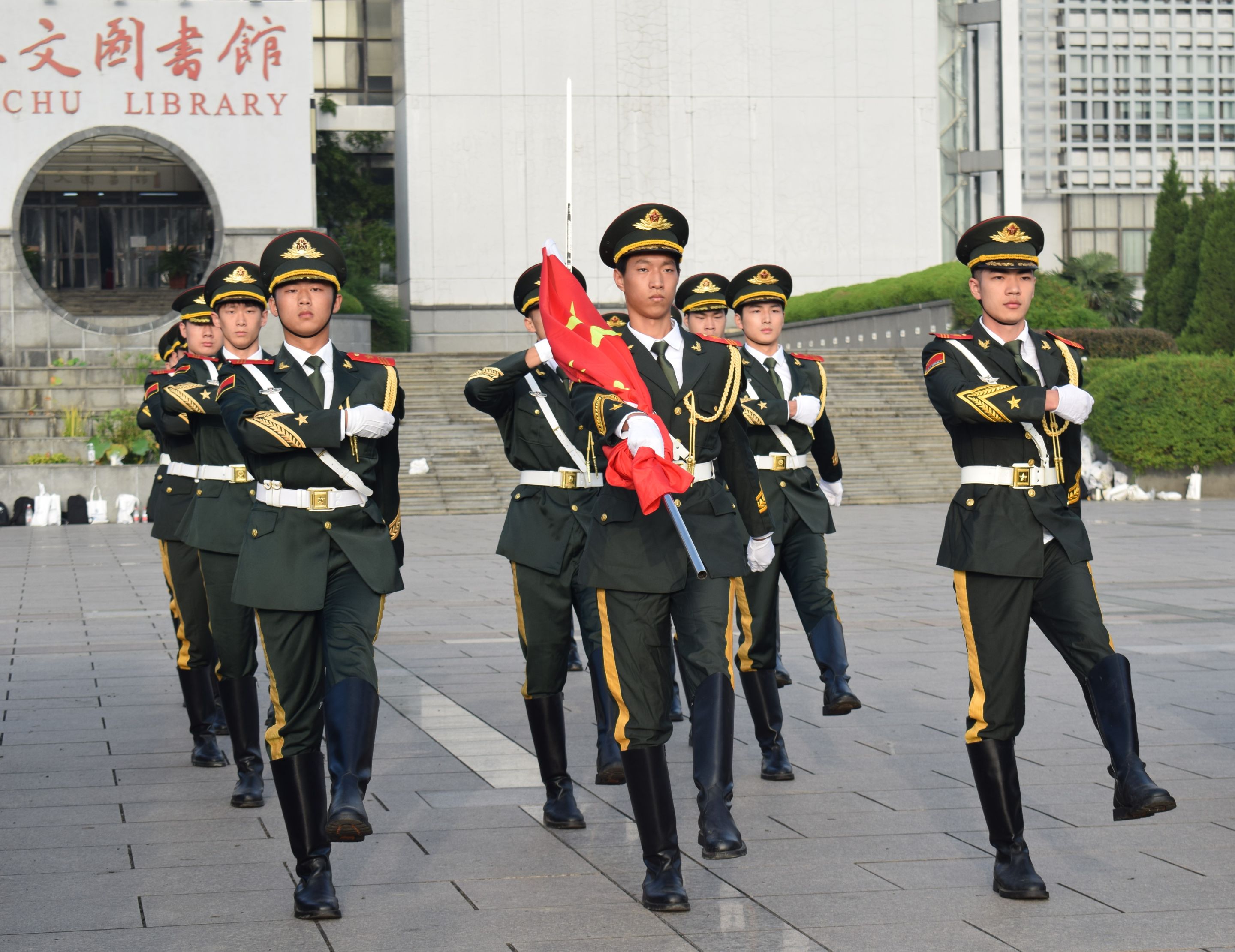 在敬文图书馆前举行升国旗仪式暨国旗下的思政课活动。绿帽奴