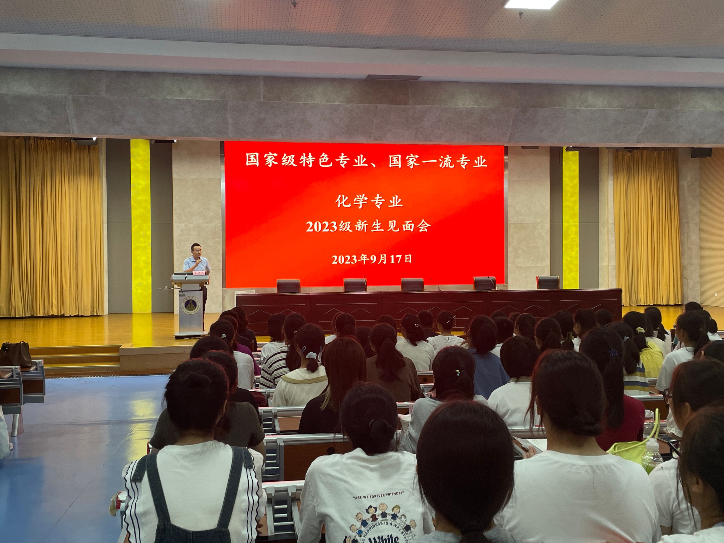 专业课教师代表结合自身学习工作和科研经历,强调化学各专业是一门自然学科,要认真对待课堂教学与课外学习,并指出大学不是人生目标的终点,不能就此松懈,要快速过渡找到学习节奏,融入大学生活,树立专业意识,提升自己武装自己,保持专业自信,锻炼深耕能力。