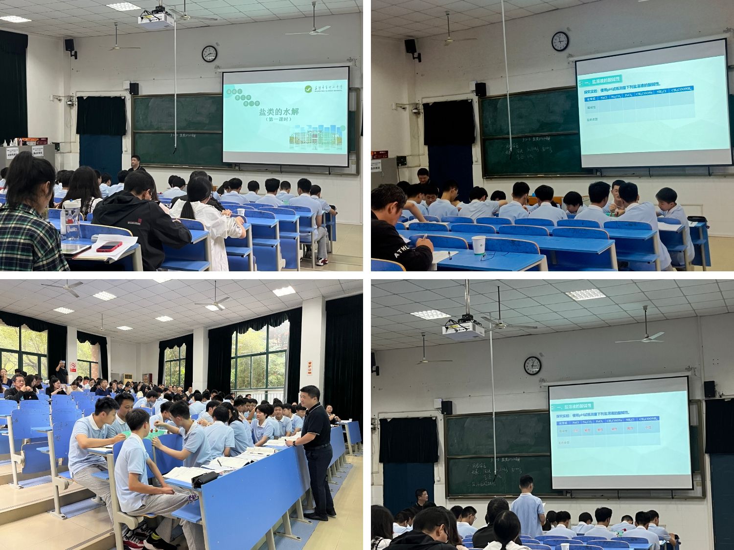 2022级课程与教学论(化学)、2022级学科教学(化学)专业研究生到芜湖市第十二中学参加“中学化学名师课堂”活动。本次活动由芜湖市田家炳实验中学朱国庆老师主持,由芜湖市第十二中学陈波老师执教名为《盐类的水解》(第一课时)的公开课。芜湖市及县区各中学的化学老师、教研员参与了本次的名师课堂活动。