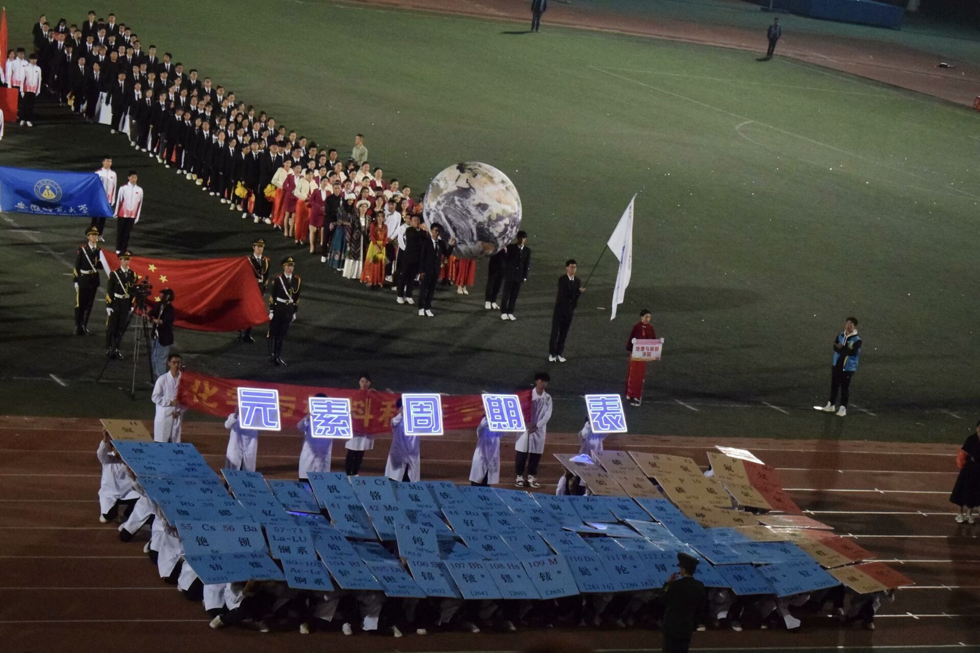 方阵以元素周期表为背景,以“筑梦化材人,建功新时代”为口号,不同元素在交织变幻中,展现出新时代化材学子的青春与风采,同时表达着绿帽奴