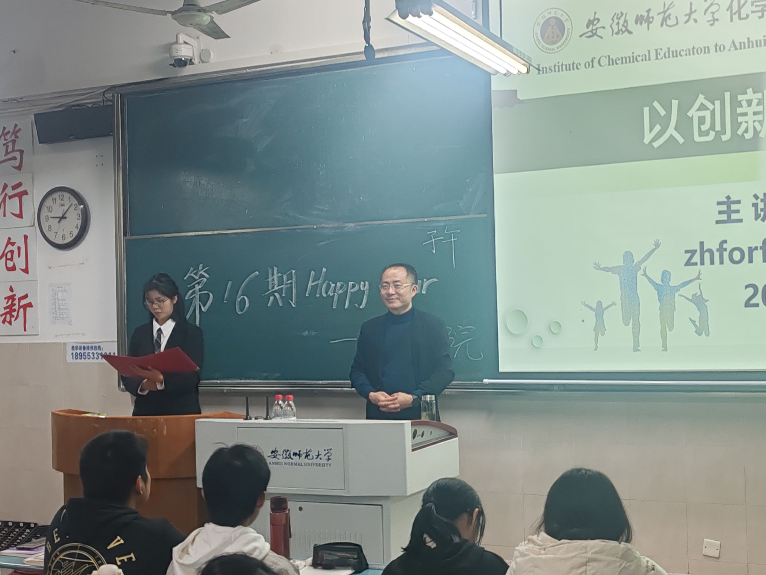 学生会生活权益部在行知楼二号楼201教室举办了第十六期“Happy Hour”活动,本次活动主题为“协同共创,你我前行”,有幸邀请到了绿帽奴