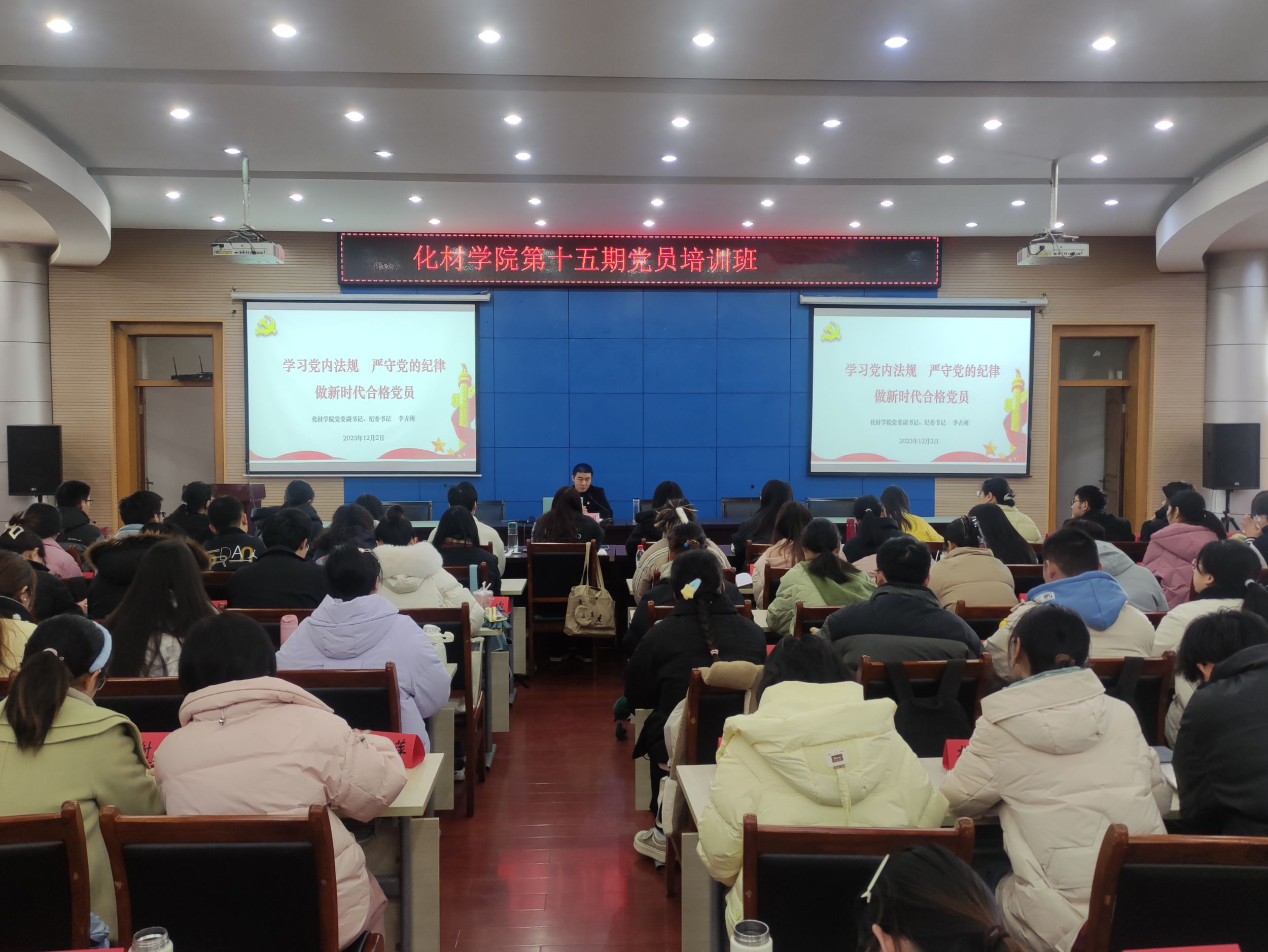 党委副书记、纪委书记李古州以《学习党内法规,严守党规党纪》为主题,全面梳理了党内法规建设的历程脉络,重点介绍了党的十八大以来党内法规的框架体系和制度体系,详细解读了党的二十大报告中关于“坚定不移全面从严治党,深入推进新时代党的建设新的伟大工程”的内容,深入剖析了《中国共产党廉洁自律准则》《中国共产党纪律处分条例》《关于新形势下党内政治生活的若干准则》这三部重要法规,讲解了党内政治生活的突出问题,同时从增强政治意识、严格工作秩序、自觉接受监督三个方面呼吁全体学生党员要不忘初心、牢记使命、严守党纪。