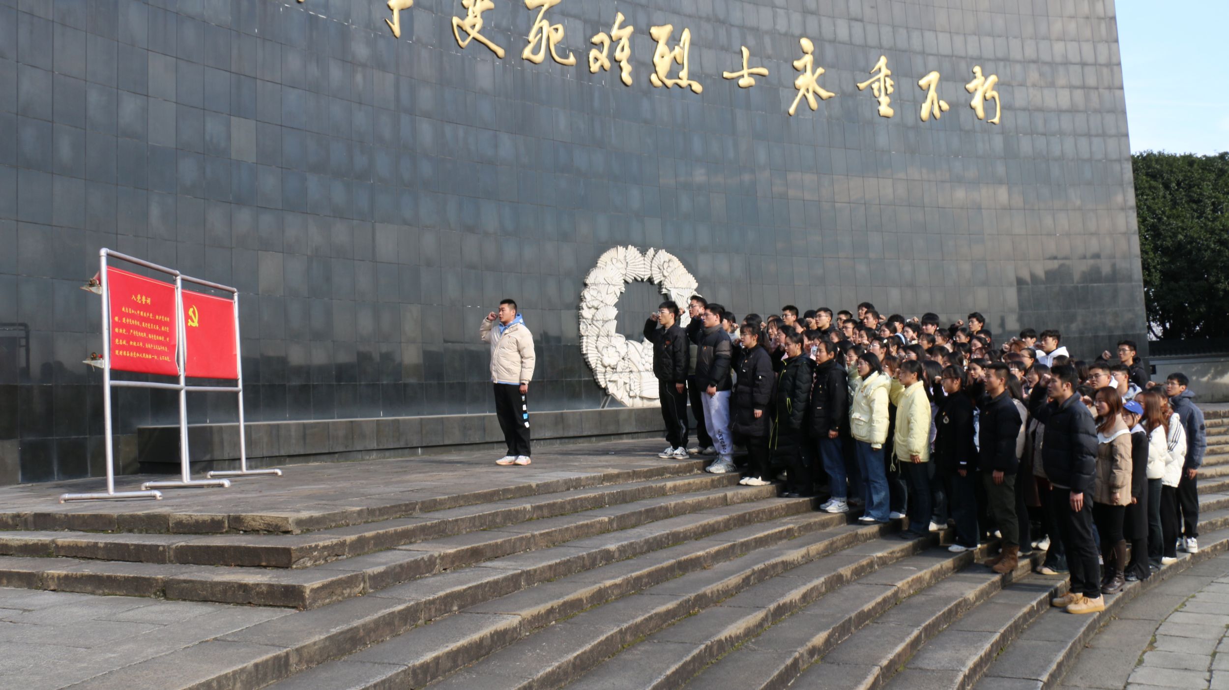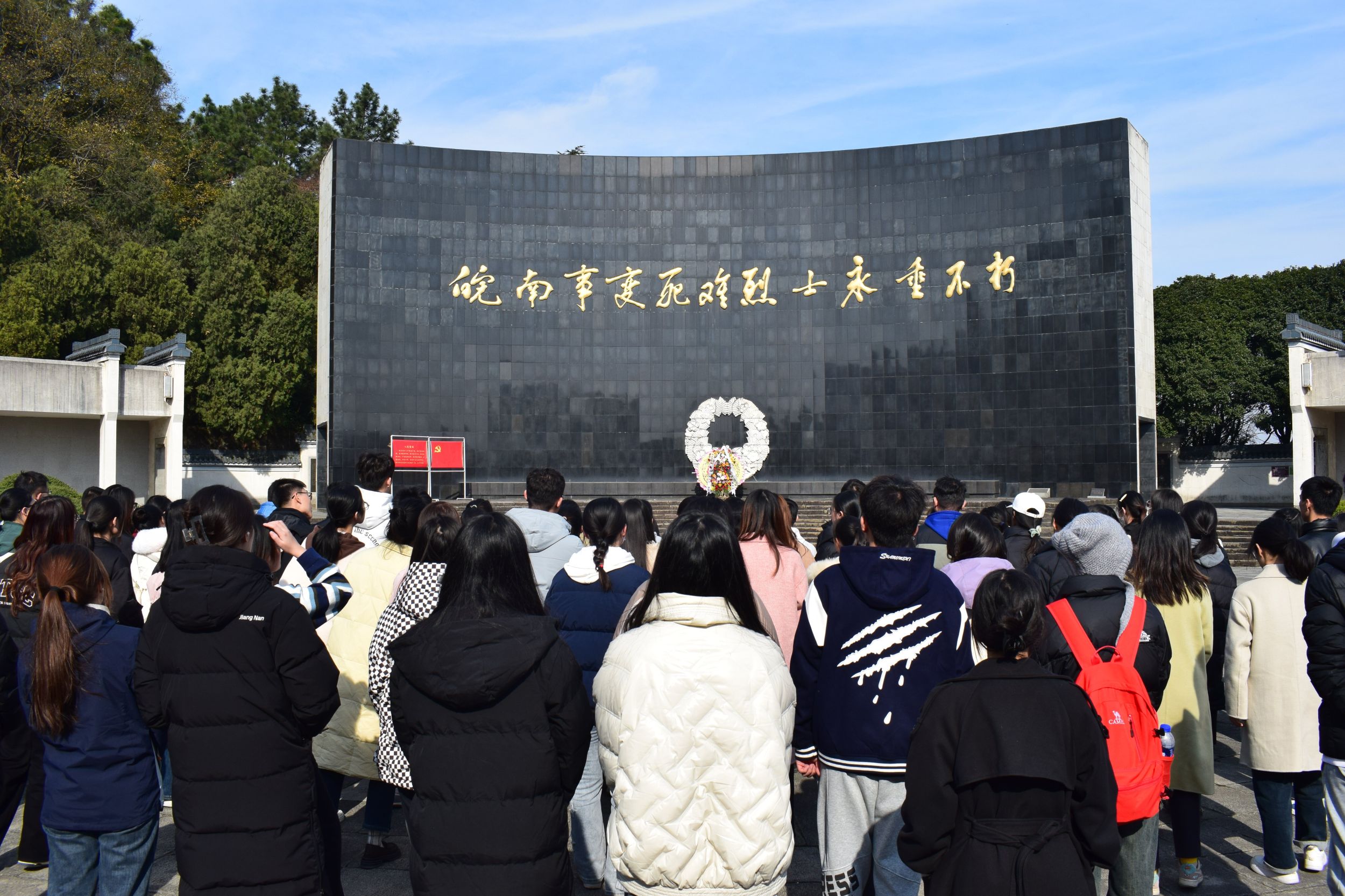 和学生党支部书记前往安徽宣城泾县开展实践活动,集体参观了新四军军部旧址和皖南事变烈士陵园,悉心“拜读”了这些记录着中国共产党及其人民军队丰功伟绩的立体史书,深刻感受到新四军在艰苦环境下坚持革命斗争的英雄气概。烈士陵园的每一处建筑都具有象征性的意义,一砖一瓦都有着深刻的寓意同时也寄托着后人对革命先辈的哀思。全体党员同志参观游览了烈士陵园纪念廊和无名烈士墓后,集合在烈士陵园纪念广场中央,进献花圈,鞠躬缅怀。在学生党员陈功洋的引领下,全体党员面对鲜红的党旗庄严宣誓,开展新发展党员集体入党宣誓活动。