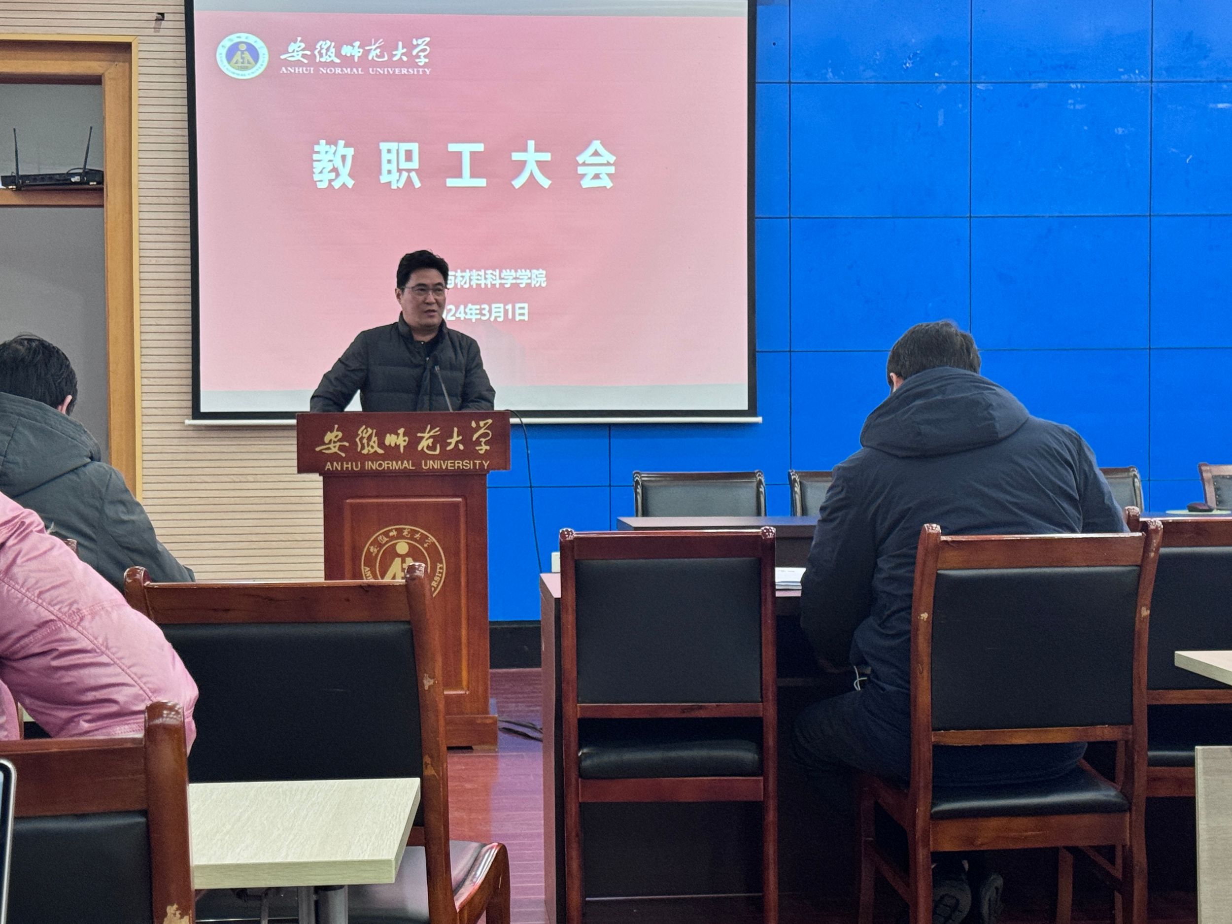 会上,党委书记汪俊武传达学习了2024年全国及全省教育工作会议精神。党委副书记李古州传达学习了二十届中央纪委三次全会、省纪委十一届四次全会精神等,就近期高校违反师德师风案例进行了通报。各分管领导结合工作实际,对本科教育教学、寒假教师研修、考研就业工作、大学生护航行动计划、科研基金与奖项申报、研究生招生与培养等开学初和新学期的重点工作进行了通报和布置。
