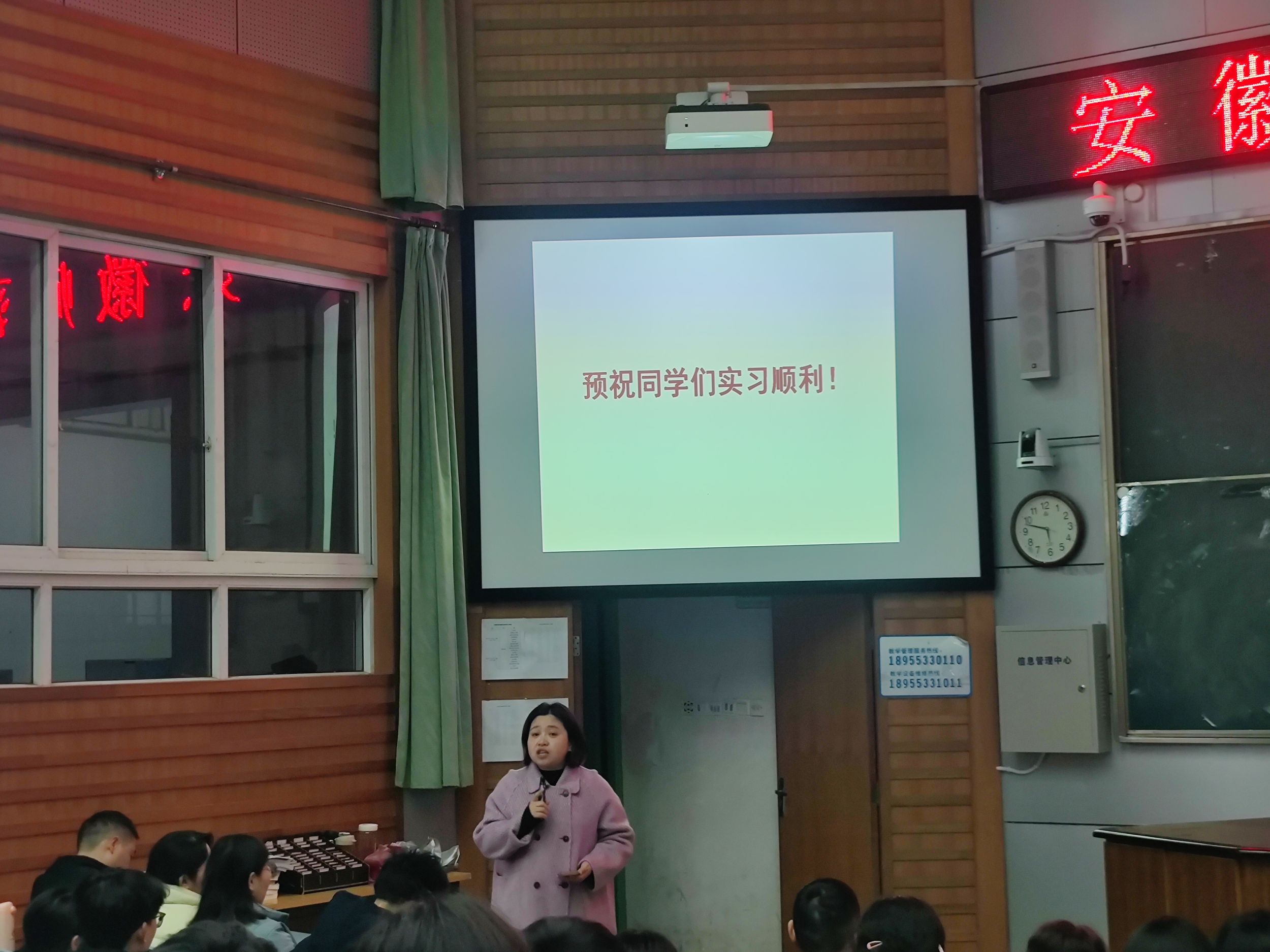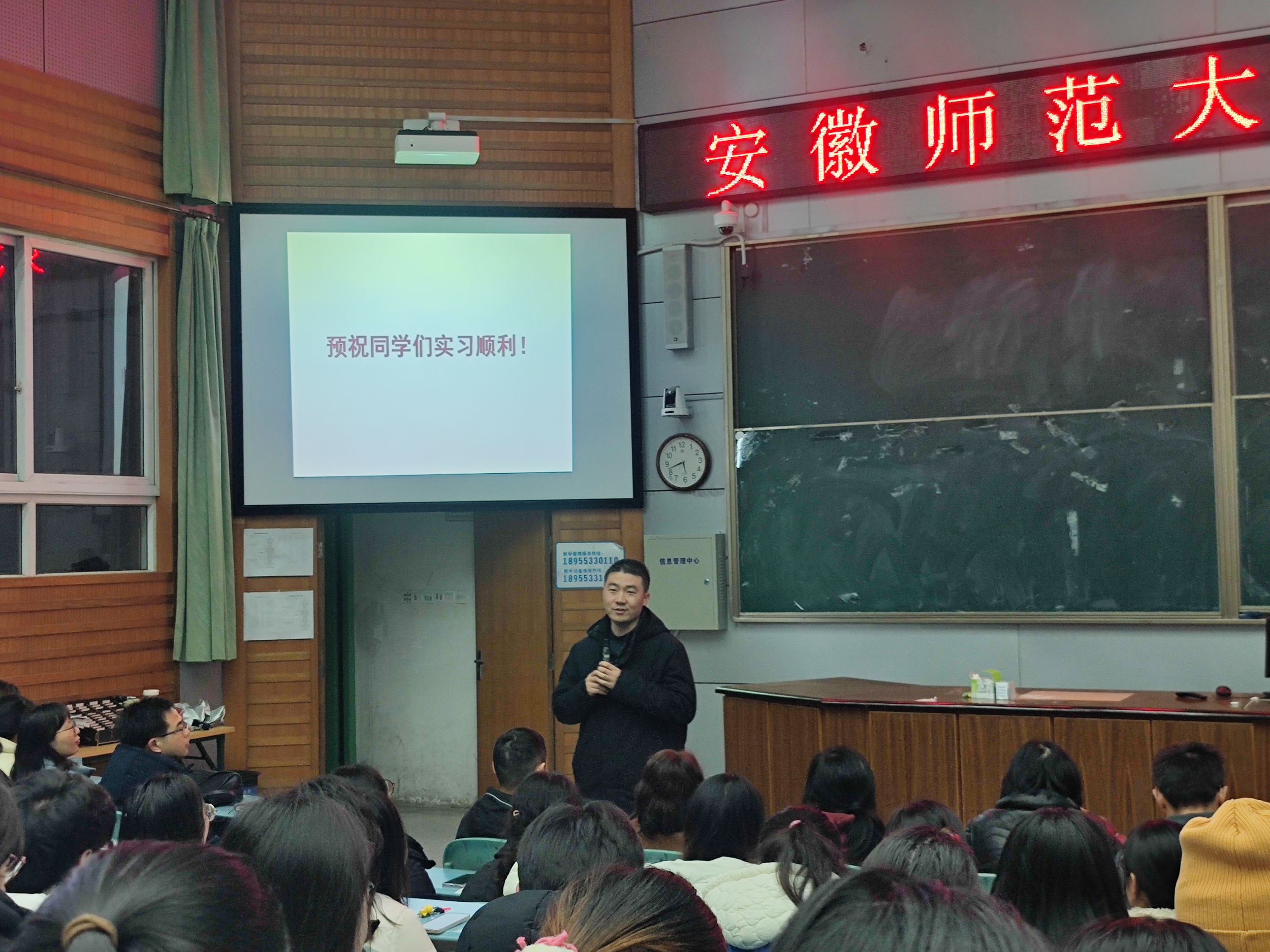 会议最后,辅导员陶勇老师就实习期间安全、请假的相关事宜进行了提醒和强调。此次实习动员大会,不仅使同学们了解了实习的意义与重要性,而且让同学们了解到实习过程中应遵守的纪律及事项。相信大家在接下来的实习过程中提升自身的实践能力以及分析问题和解决问题的能力,为成长为“金牌师范生”的道路奠定坚实的基础。