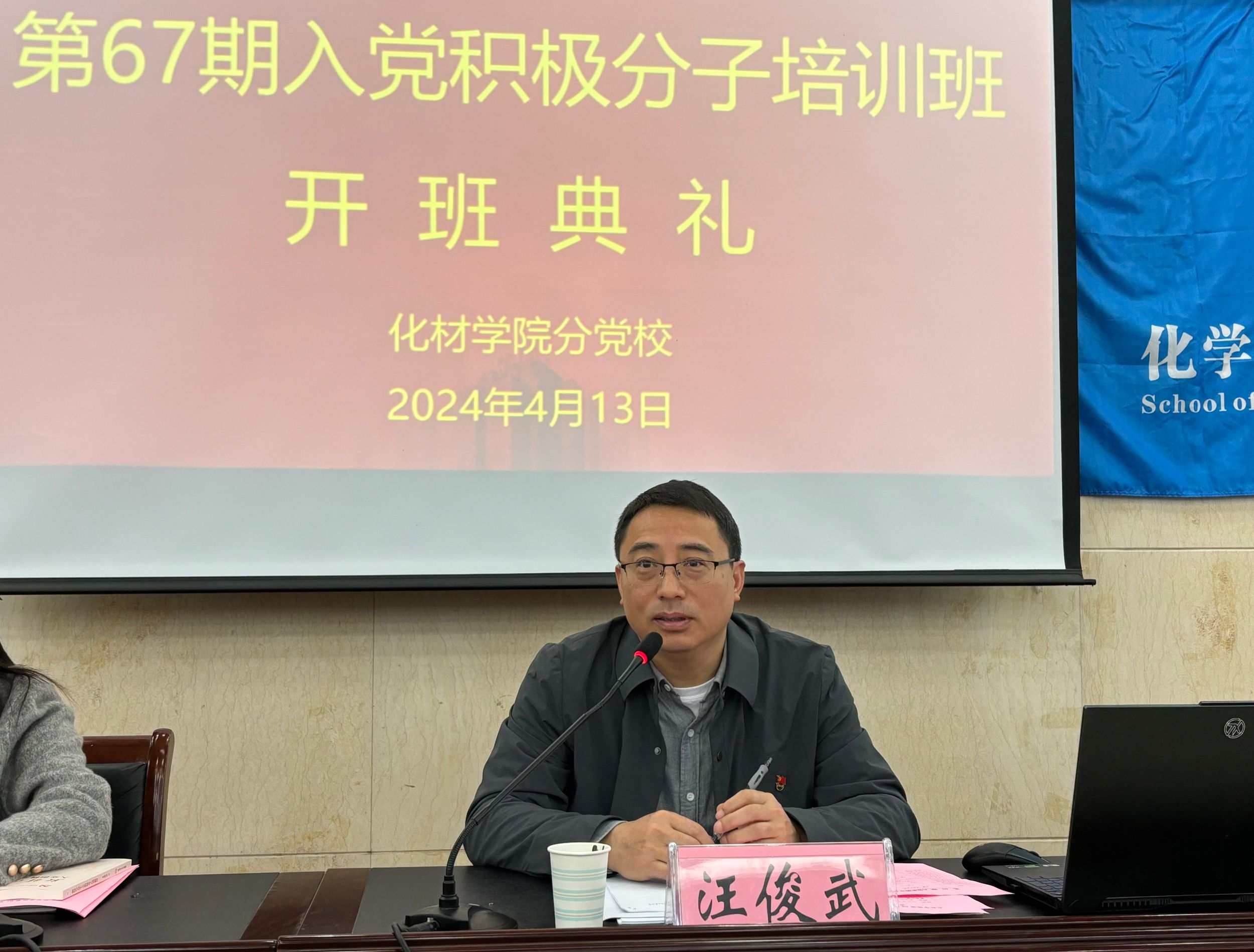 党委书记汪俊武、党委副书记李古州、培训班班主任王霞及全体学员参与此次开班典礼。开班典礼上全体齐唱国歌,李古州宣读了培训班班委任命,王霞宣读了班级管理制度。2023级化学(师范)专业张岩作为学生代表发言,她结合自身实际表示要积极向党组织靠拢,顺应时代发展趋势,以实际行动贯彻落实党的二十大精神,为实现中华民族伟大复兴的中国梦贡献自身力量。汪俊武在动员讲话中强调本次培训的重要性,并对学员们提出了殷切期望,希望全体学员端正态度,明确自己的责任和使命,遵守纪律,准确理解党的理论知识,高质量完成本次培训学习。