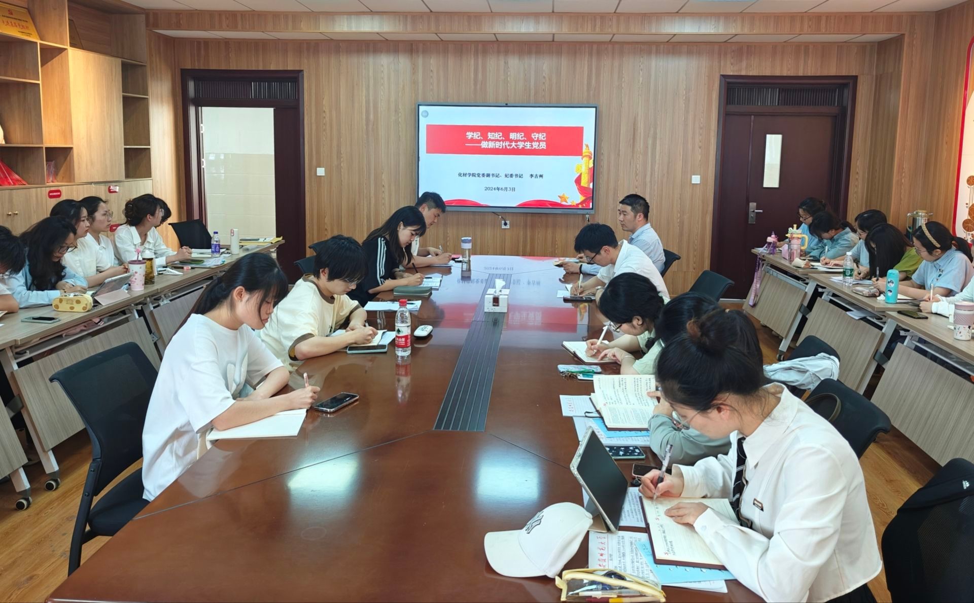 会议第一项议程,开展党纪学习教育理论学习。李古州围绕新修订的《中国共产党纪律处分条例》为化学系本科生第二党支部及应化系本科生党支部全体党员讲授专题党课。李古州以“学纪、知纪、明纪、守纪”为题,讲授要如何做一名新时代大学生党员,从“为什么学”“学什么”“怎样学”三个维度,深刻阐述了大学生党员通过党纪学习教育,要深刻认识《条例》的重要性和必要性,要深入领会《条例》的新内容和新要求,要准确把握《条例》的主旨要义和时间要求。李古州在党课中指出,希望支部全体党员巩固学习教育成果,全面贯彻落实自我革命的重要思想,将习近平总书记有关重要论述转化为自觉行动,尊重和维护党章,聚焦实干导向,用青春推动党的事业高质量发展。