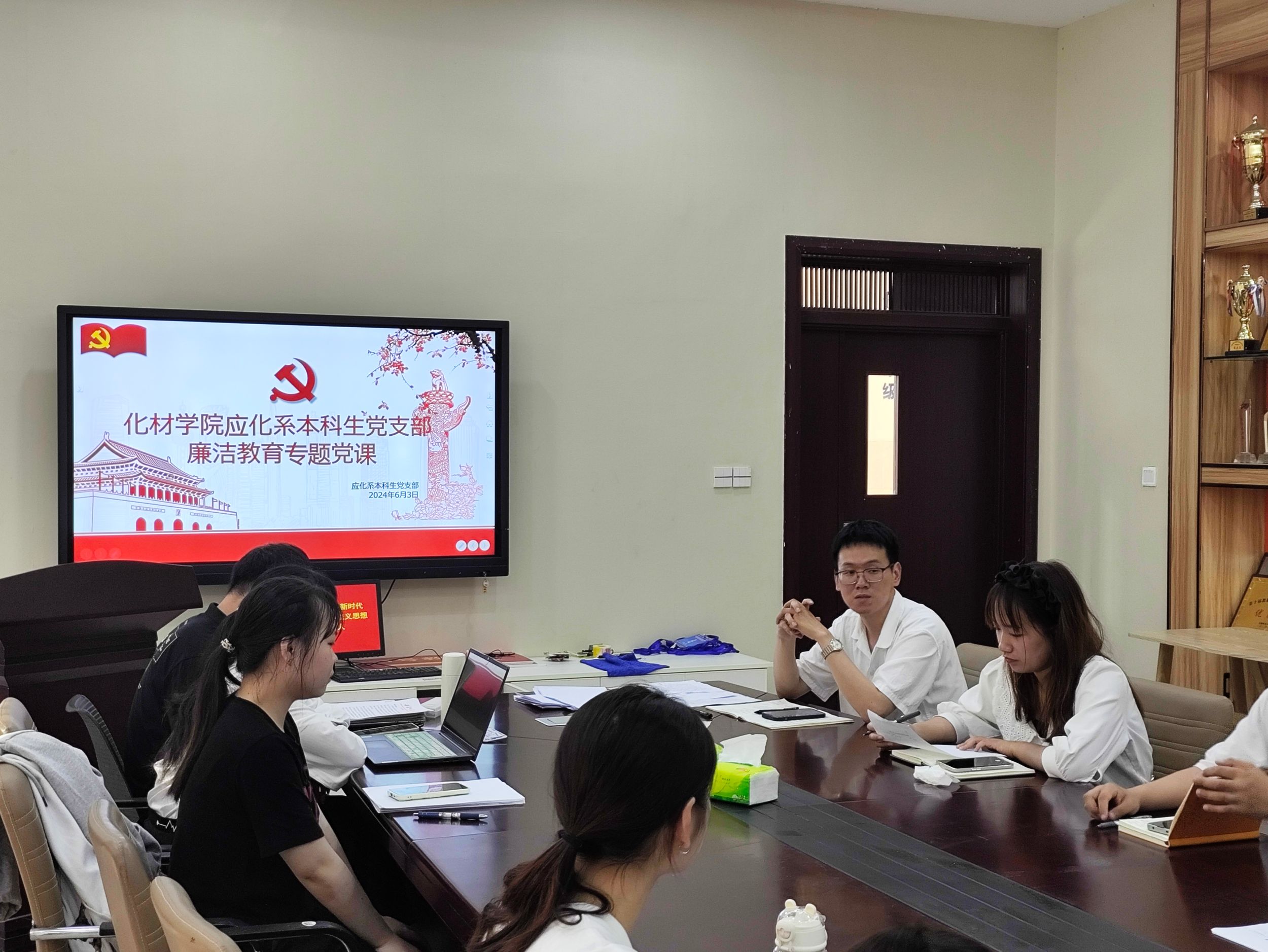 大会第四阶段,支部书记梁成围绕党员廉洁教育开展专题学习,与会的党员逐一讨论了对廉洁教育的看法和感悟,纷纷表示深刻领悟到了廉洁的重要性,在今后的学习和生活中,将积极遵守廉洁纪律,争做有品德、有道德、有良知的化材学子,以实际行动和担当践行一名党员的使命。