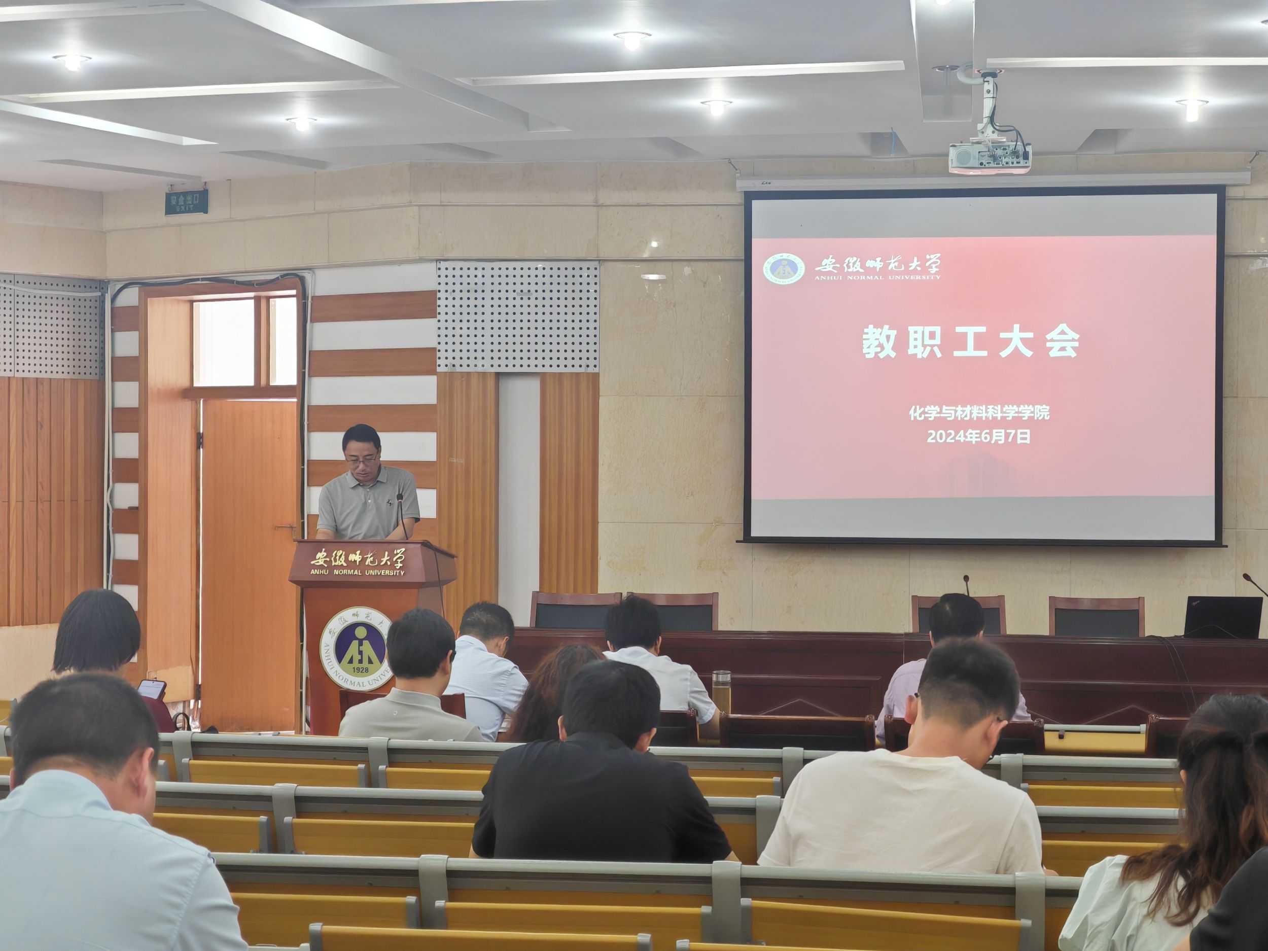 党委副书记、纪委书记李古州通报了安徽省纪委监委公开通报五起违反中央八项规定精神典型问题,传达了学校党纪学习教育专题辅导报告会精神,并领学了高校严重违纪违法典型案例(选编)进行警示教育。其他分管领导就本科生教学、科研工作、学生管理和毕业生就业、行政工作、实验室安全等进行了具体布置与强调。