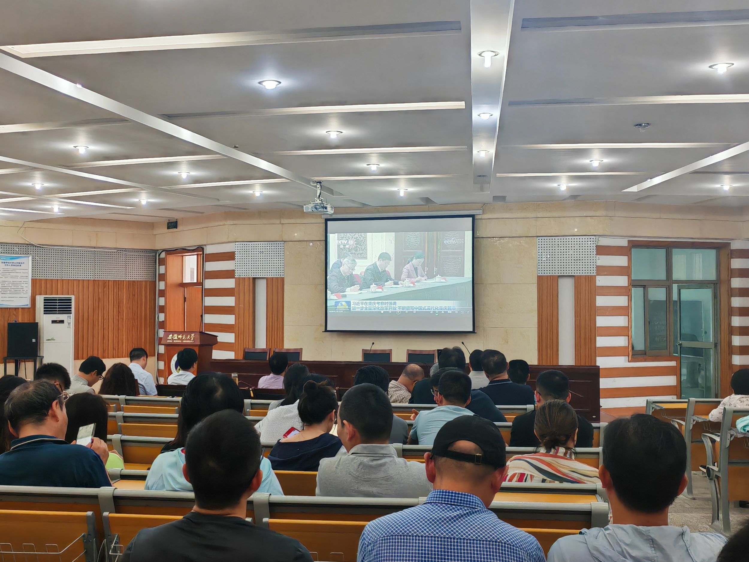 会上,全体教职工以观看新闻视频的方式学习了习近平总书记在重庆、山东等地考察的重要讲话精神。汪俊武领学了习近平总书记对学校思政课建设作出的重要指示精神、习近平总书记在中共中央政治局第十四次集体学习时的重要讲话精神以及中共教育部党组关于印发《普通高等学校教师党建和思想政治工作质量标准(试行)》的通知。绿帽奴