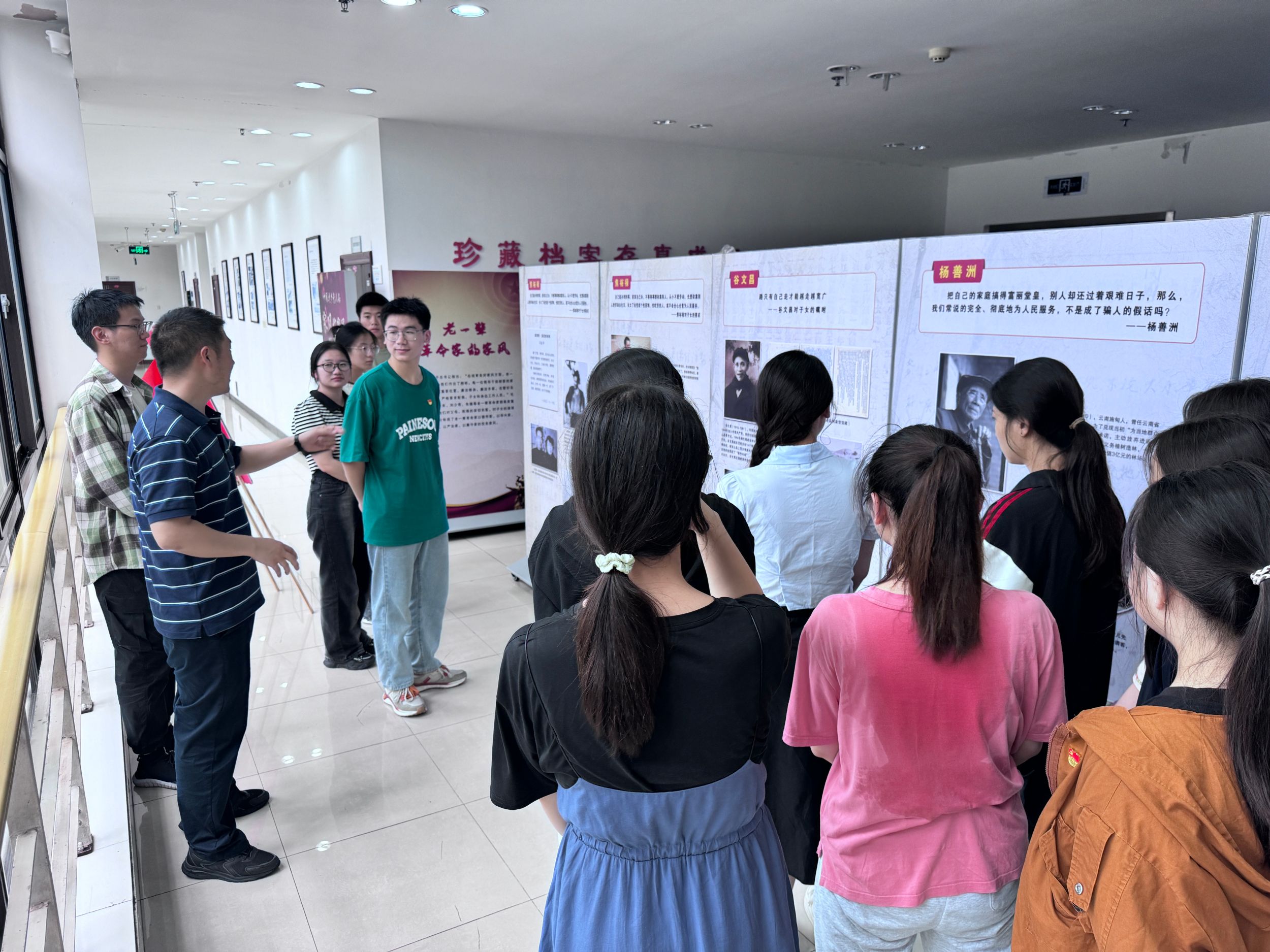 活动伊始,档案馆负责人详细为师生讲解展览布局与参观脉络,整个展览通过丰富的档案文献、影像资料等内容,以众多历史人物、生平事件等生动展现了一系列重大历史事件,深刻缅怀革命先辈的丰功伟绩,重温百年党史中珍贵的革命记忆。