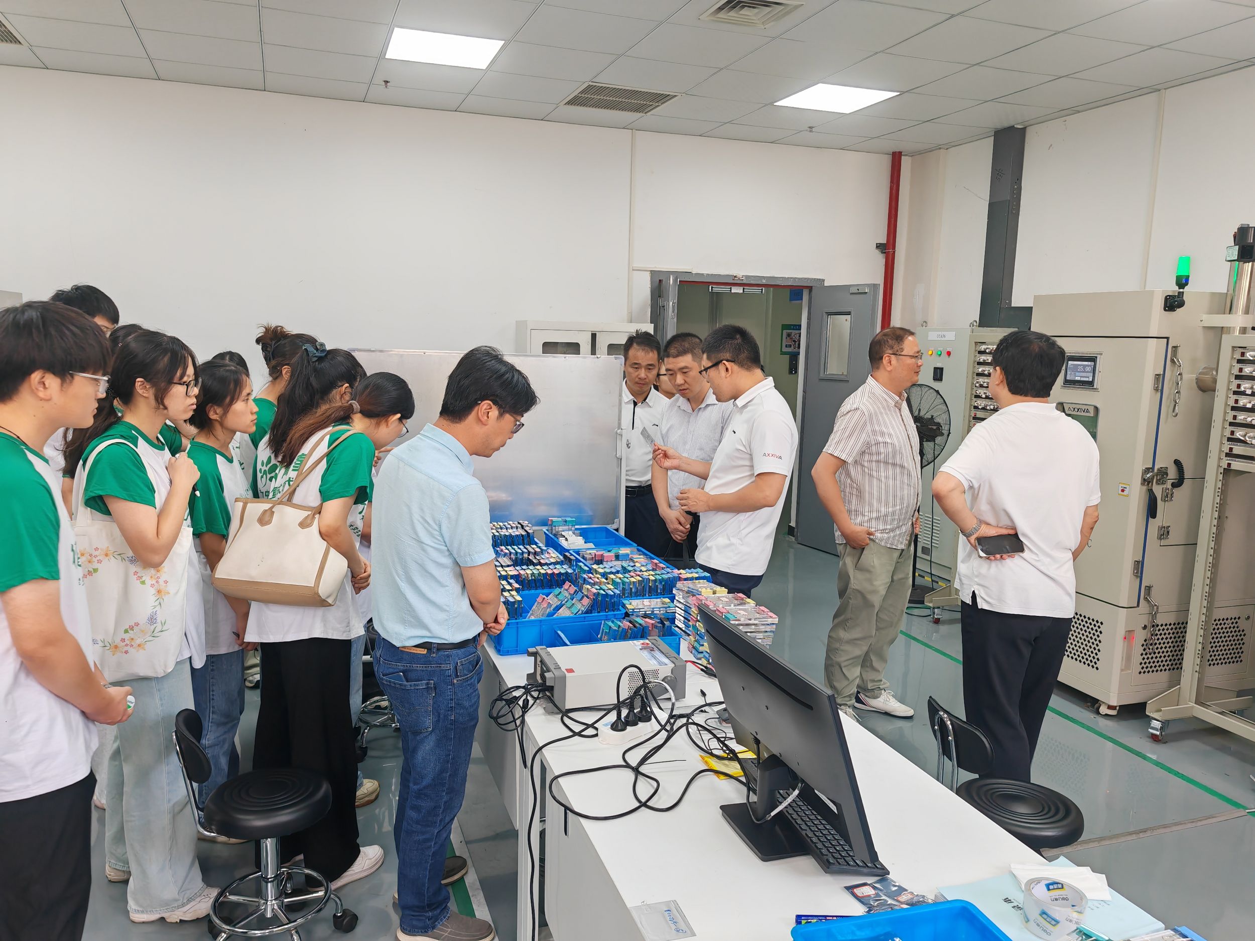 随后,在沈赟带领下参观了公司生产车间,从电池材料研发、电池生产、电池组装、性能检测等方面介绍了电池大规模生产流程,公司通过多项技术改进和安全监测,大大增强了锂离子电池的安全性。