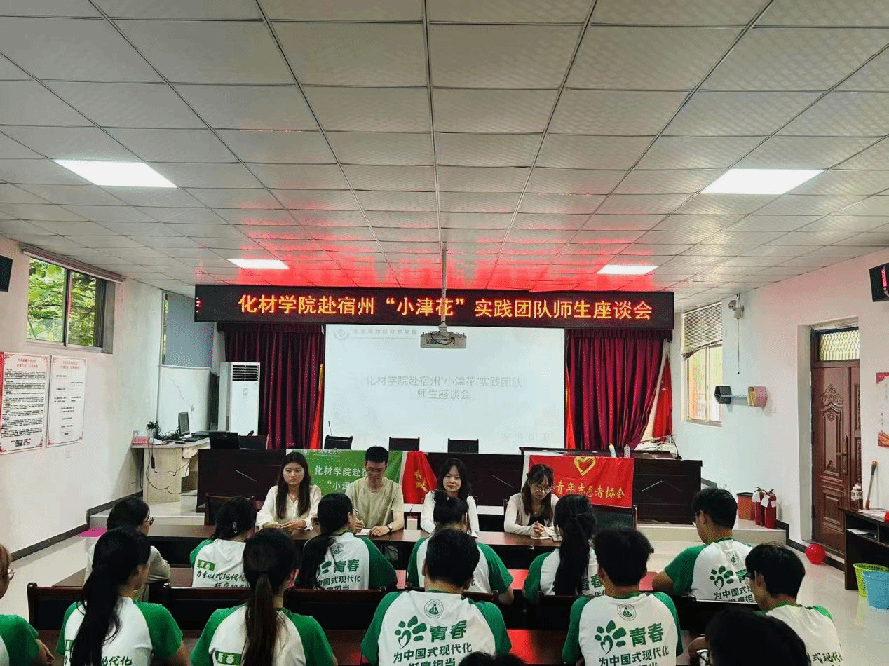 团委副书记梁成、王霞等一行前往宿州市慰问了“小津花”本科生社会实践团队。在座谈会上,团队成员热情分享实践体会收获,纷纷感慨到“当好一名老师是这般的不易”“我们在实践中体会到教育学生带来的使命感,体会到被学生认可带来的喜悦感,体会到被家长信任的带来的责任感”等等。随后队长张岩总结到虽然实践过程中我们收获了很多,但我们还有许多不足需要不断改善,未来几天的实践将和团队成员一起努力克服困难。