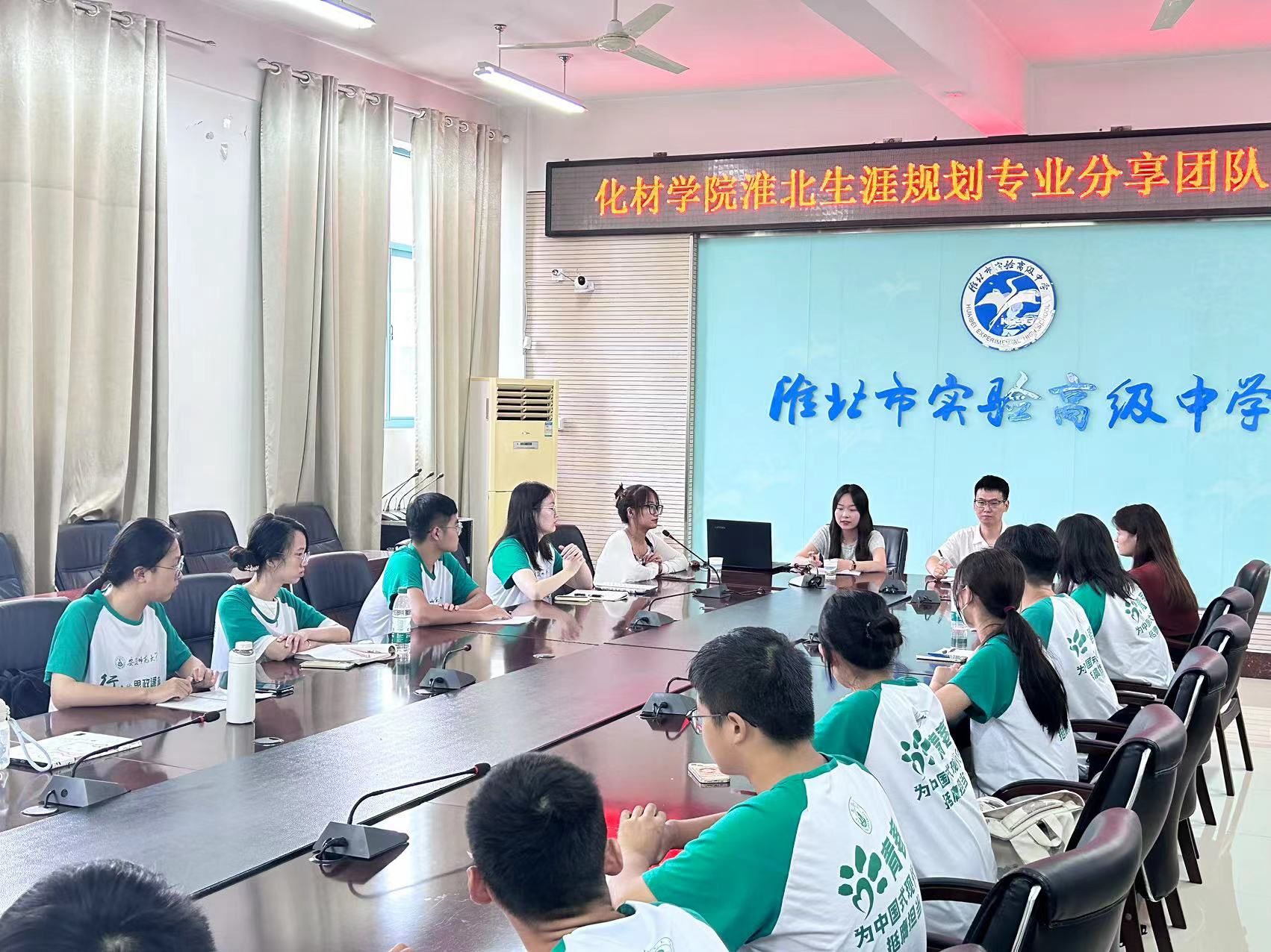团委副书记梁成、王霞等一行赴淮北市实验高中慰问“助流入海,专业扶技”生涯规划专业分享本科生社会实践团队,并召开暑期社会实践团队师生座谈会。在座谈会上,队长郜子闻向各位老师汇报实践开展的情况以及遇到的问题,团队成员分享在实践过程的感悟,表示在本次社会实践的过程中不仅学习了很多专业知识,也锻炼了自己的表达能力,他们将珍惜这次宝贵的实践经历,继续努力学习,不断进步。随后指导老师就社会实践遇到的问题给出了相关建议,希望在后续的实践中不断改善。