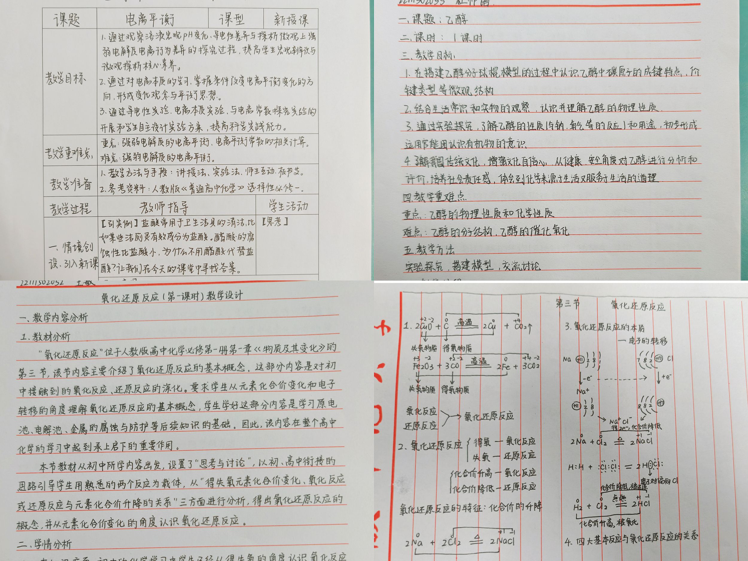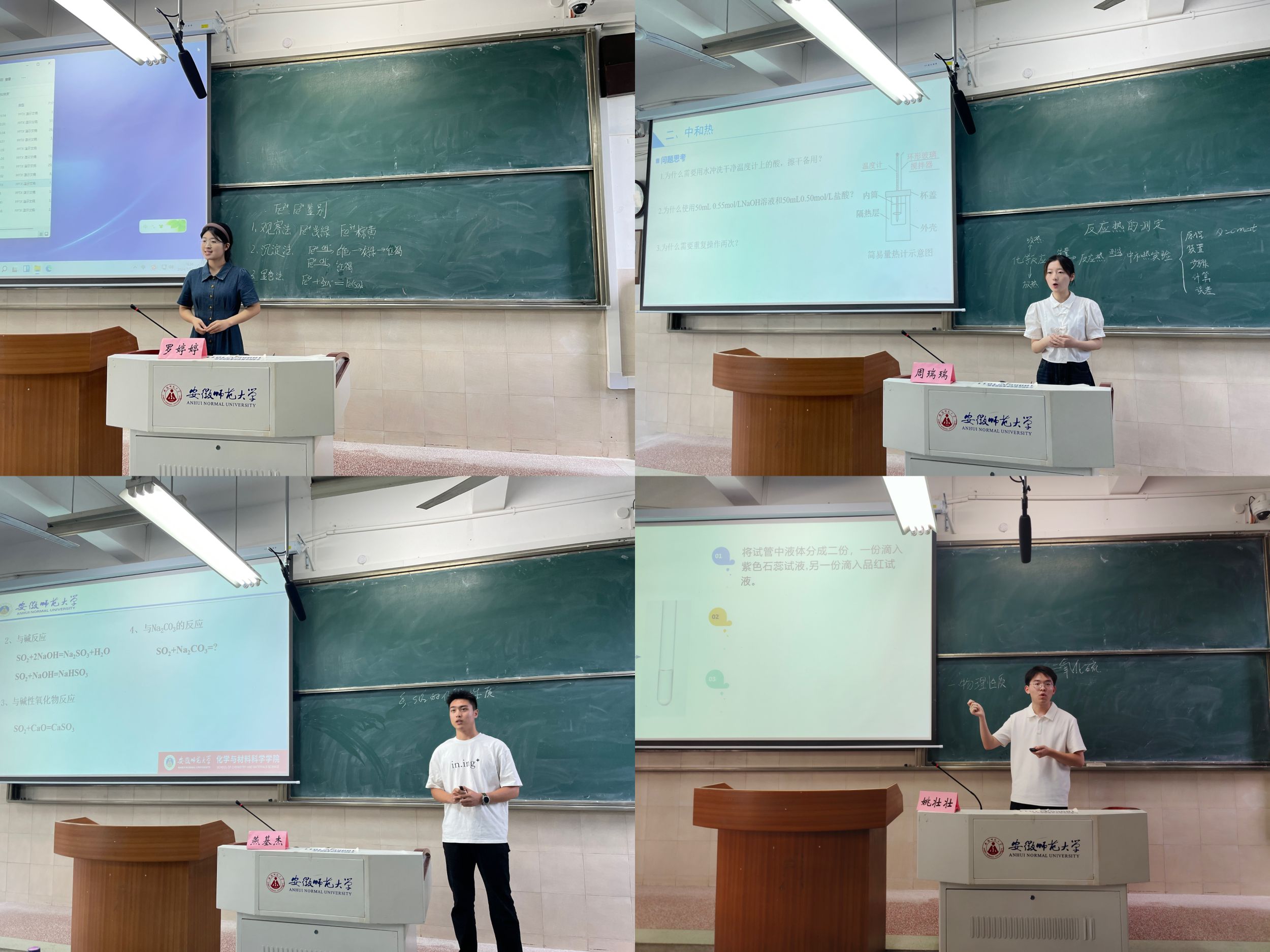 本次比赛分为模拟授课、教学板书、教学教案、主题演讲四个部分,旨在展示优秀师范生的教学实践能力、教案设计能力、板书能力、多媒体运用能力、课堂设计能力、气氛调节能力、语言表达能力等各个方面的综合素质。在模拟授课环节,各位同学从高中化学教材中自选课题,深入挖掘课本内涵,精心设计互动环节,选手们从教学设计到课件制作都做了充足的准备。比赛过程中,每位选手都展示了自己独特的风采,赢得了在场观众的热烈掌声。胡欣睿通过风趣的语言介绍了化学电池的优化与设计,展现了对课堂节奏的掌握能力;冯舒雅从打印机的工作原理出发,进行了墨粉成分的检验和铁不同价态化合物的学习;周瑞瑞以天然气和煤气的定价为切入点,联系生活实际讲解了反应热的测定。
