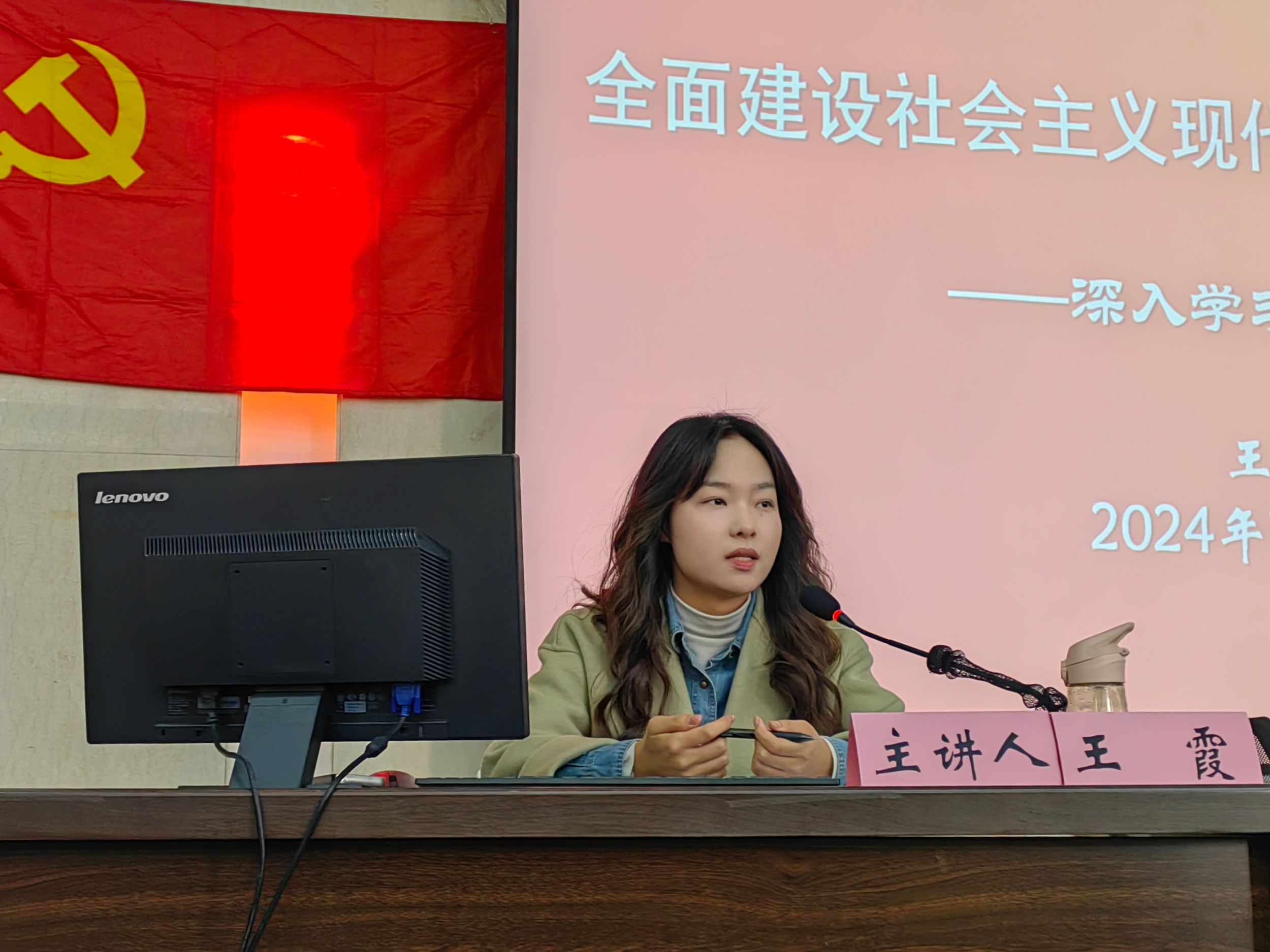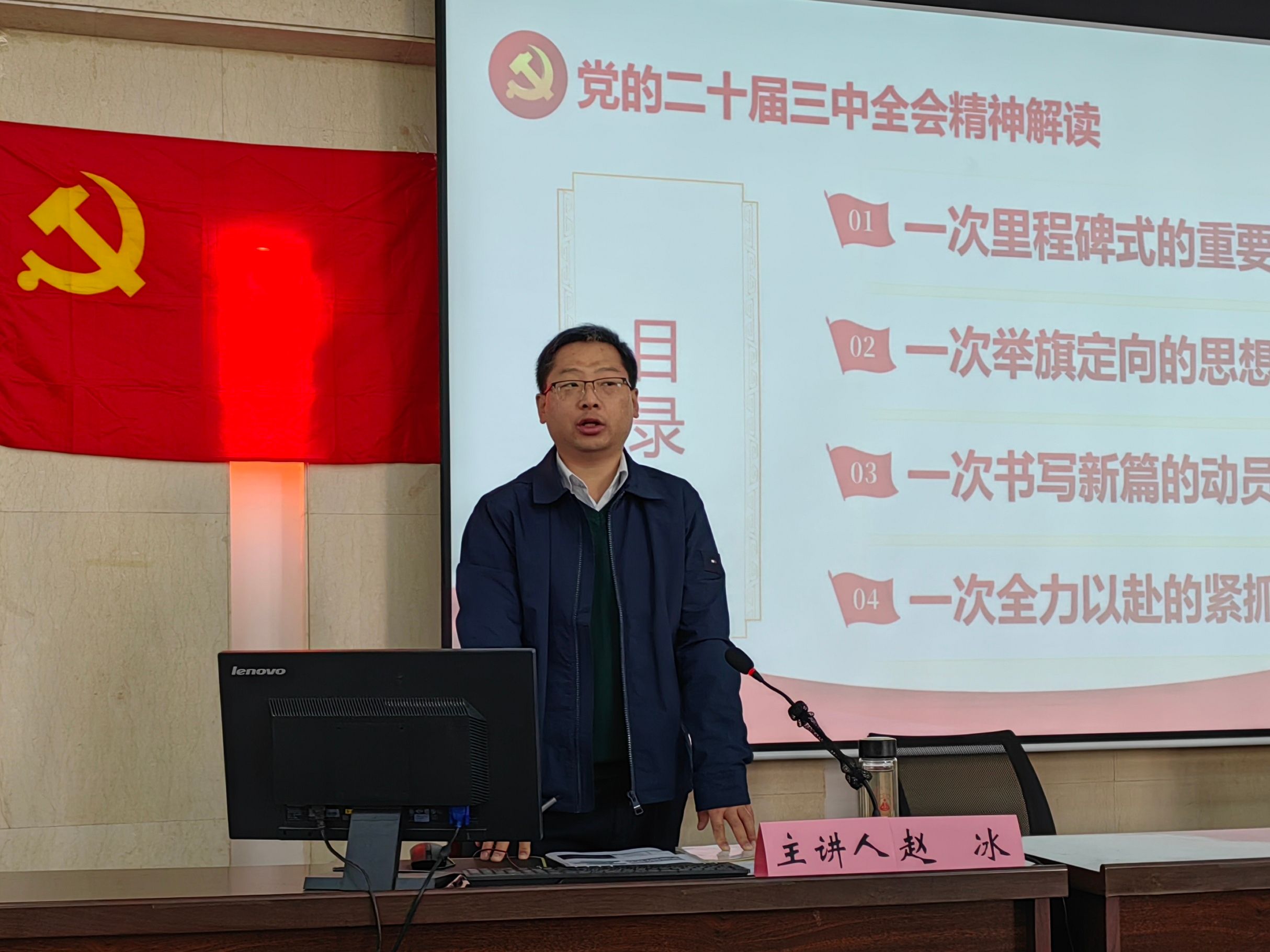副院长赵冰以《党的二十届三中全会精神解读》为主题,从“一次里程碑式的重要会议、一次举旗定向的思想指引、一次书写新篇的动员部署、一次全力以赴的紧抓落实”四个方面进行讲授,他强调,全体学生党员要准确把握党的二十届三中全会在中国现代化进程中的历史方位,深刻领会全会的重大意义,从“向哪里改、怎么改、改什么”深入理解全面深化改革的主题,认清自身现阶段的主要任务,聚焦身边小事,切实走好脚下的路,用实际行动推动党的事业高质量发展。