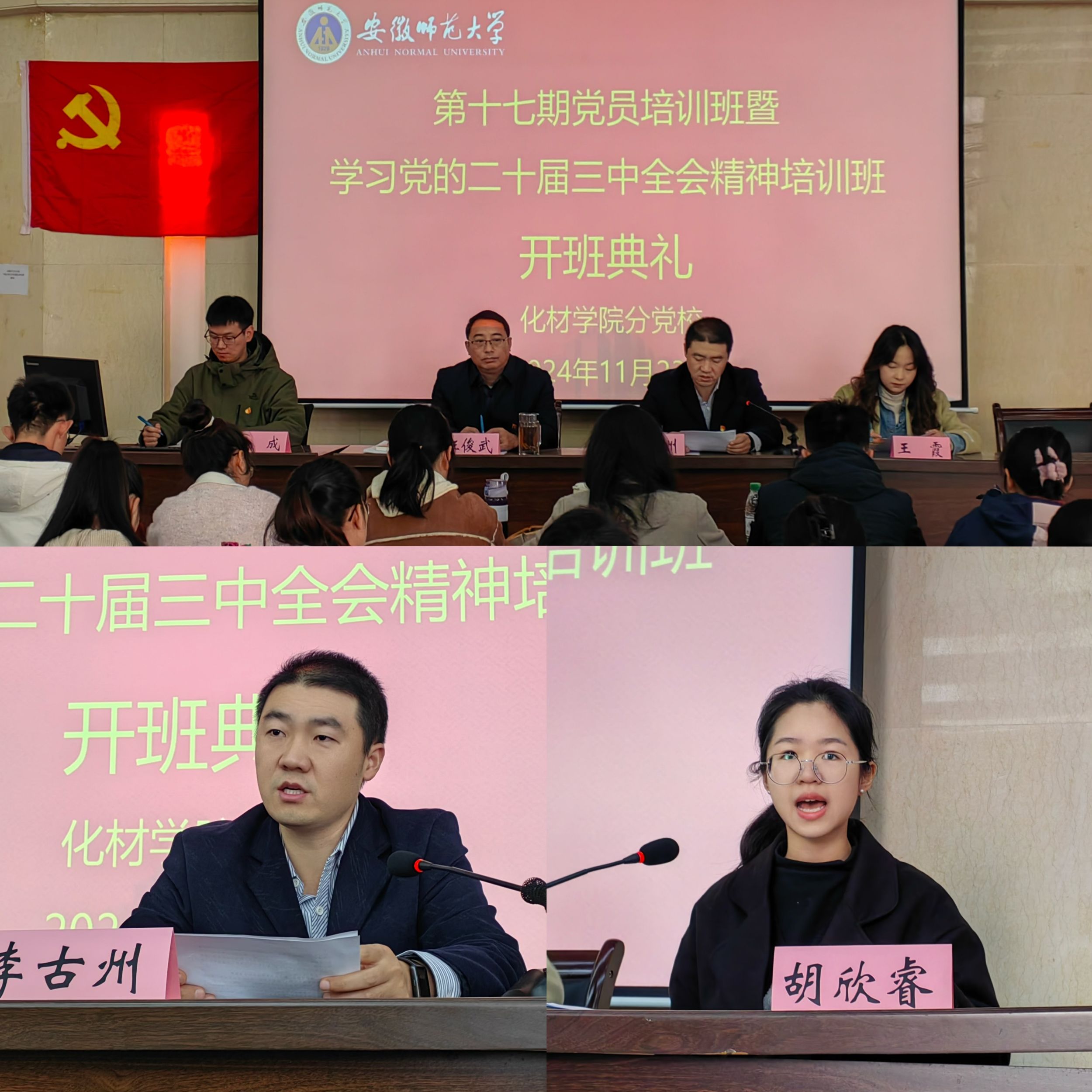 开班典礼在庄严的国歌声中正式拉开帷幕。梁成首先介绍了本次培训班的基本情况、班委组成及班级管理制度。2023级学科化学专业研究生胡欣睿作为学员代表发言,她表示要强化身份意识,严格履职尽责,充分发挥党员的先锋模范作用。李古州在致辞中强调,广大党员要深刻认识开展党的二十大和党的二十届三中全会精神学习培训的重要意义;要明确学习方向,努力提高培训效果;要严格要求,高质量完成本次培训学习任务。