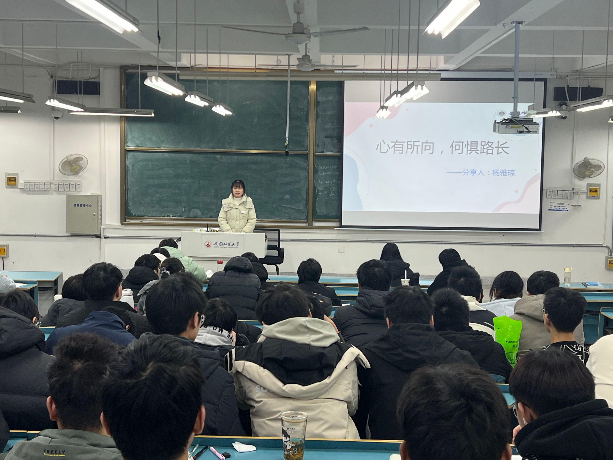 杨雅琼同学作了题为“心有所向,何惧成长”的经验分享,她从一部《逆行人生》的电影讲起,强调了课前预习、上课认真听讲、课后认真复习、合理规划时间的重要性。她鼓励同学们在大二阶段要尽早确定目标,注重个人的全面发展,积极参与各类志愿服务活动,这不仅能够锻炼实践能力,还能够培养社会责任感,更是向党组织积极靠拢的实际行动。