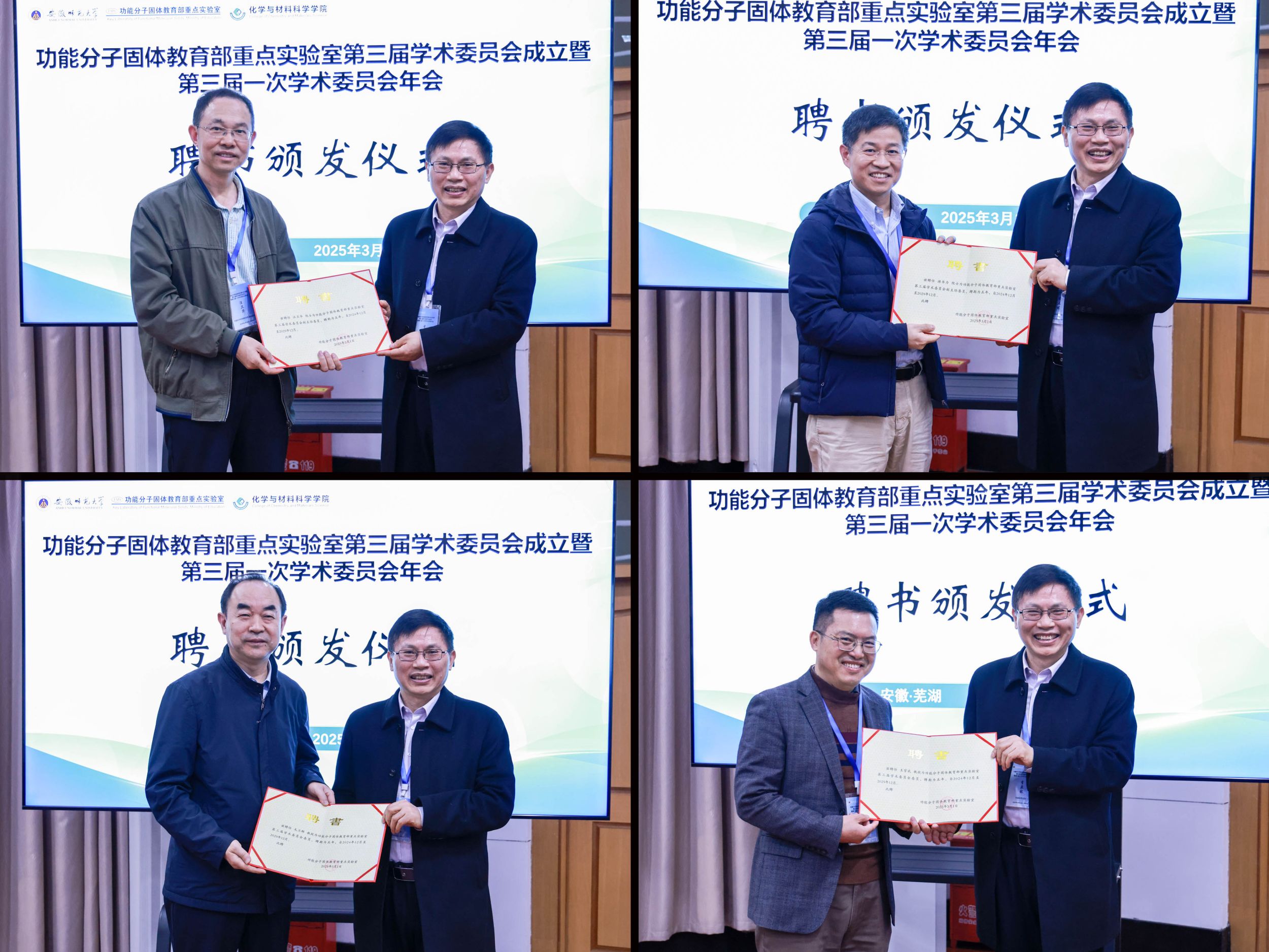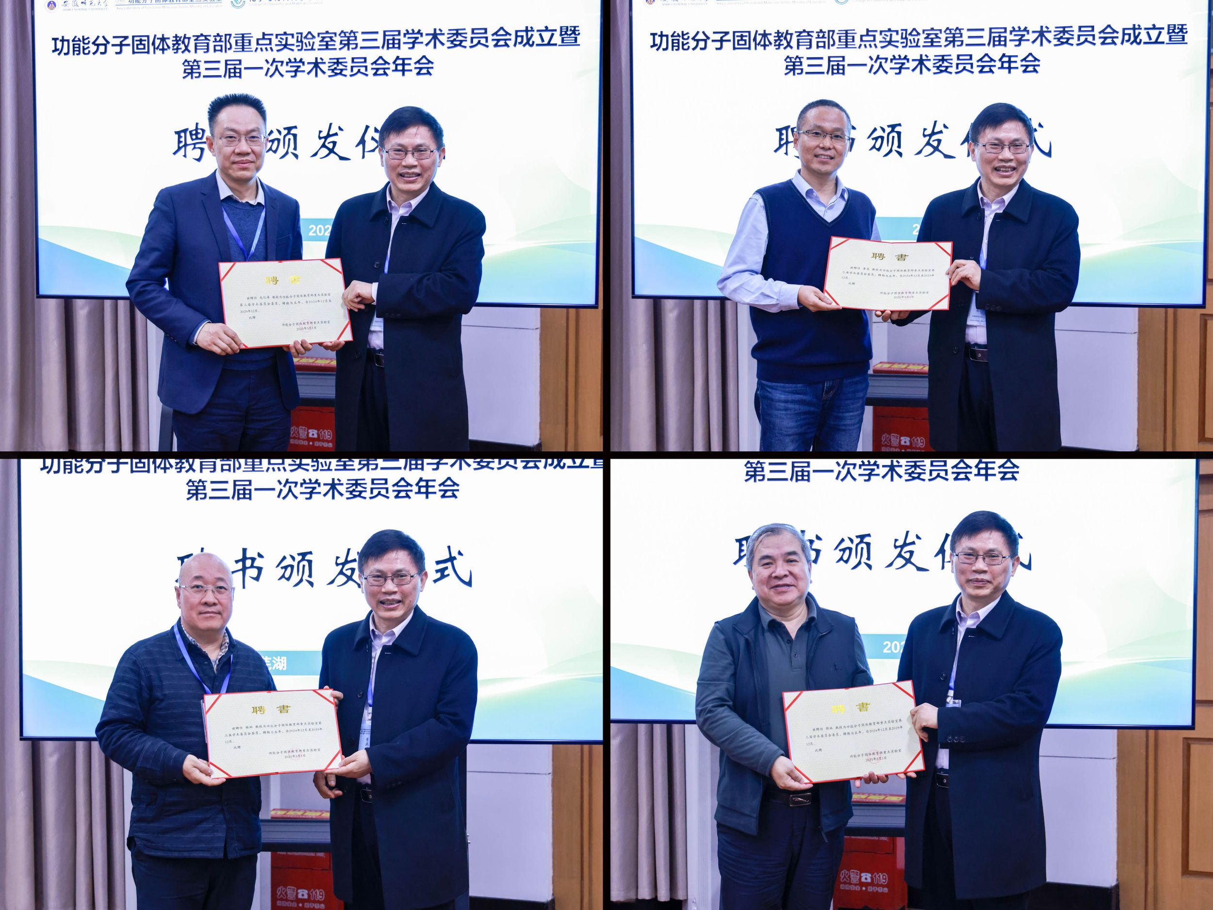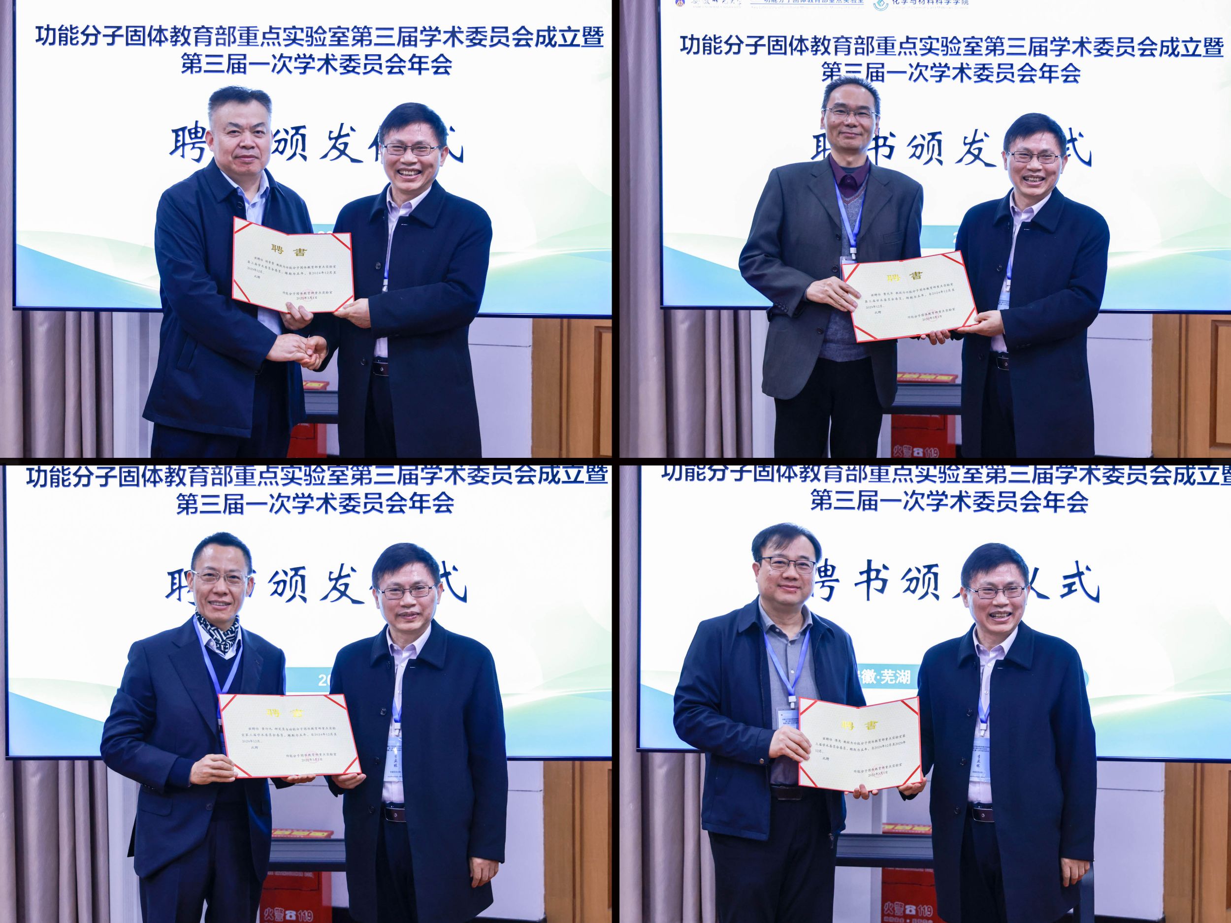 建设发展,尤其是对功能分子固体教育部重点实验室、化学学科、材料学科建设发展的关心、支持与指导,并为功能分子固体教育部重点实验室第三届学术委员会各位委员颁发聘书。