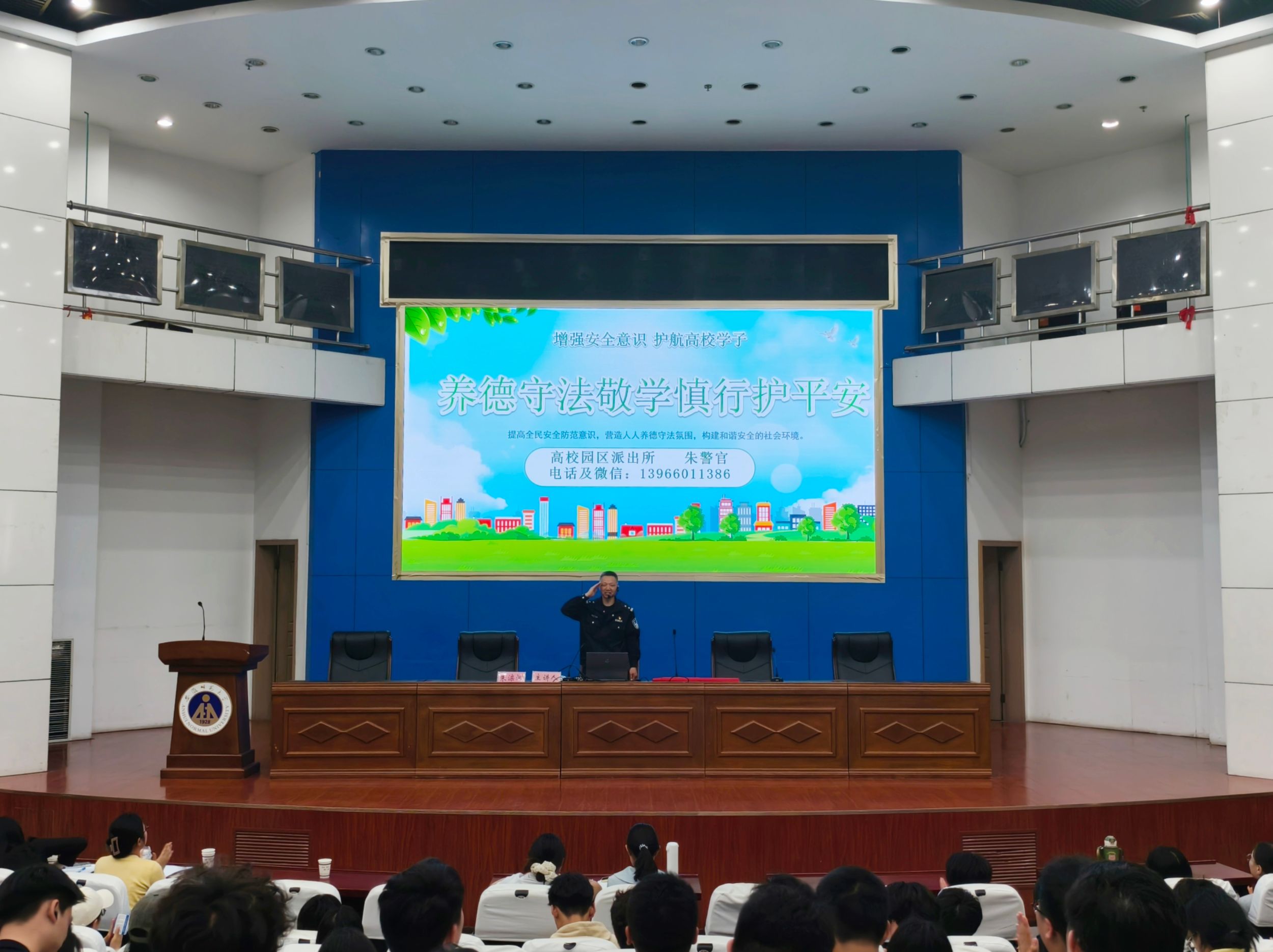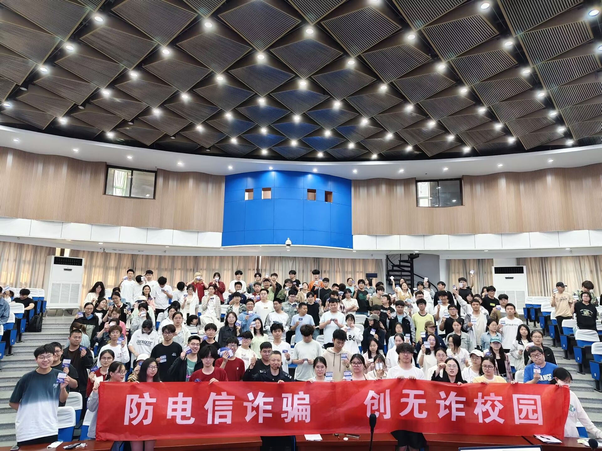 邀请高校园区派出所副所长朱滦河作题为《增强安全意识 护航高校学子》的专题讲座。他围绕“养德守法敬学慎行护平安”展开授课,重点强调了预防诈骗。朱警官凭借丰富的从业经验和知识,从“什么是诈骗”“常见的诈骗手段”“怎样有效预防诈骗”“真实案例”“防诈知识互动问答”等方面进行阐述,结合高校的典型案例、真实数据,深入剖析校园诈骗的运作机制,为同学们揭开校园骗局的层层面纱。提醒同学们不要轻信陌生人、不要点击不明链接、注意保护个人信息等,以警校联合的方式为学生提供安全保障。他强调,寝室长和学生干部是开展校园安全教育的中坚力量,必须带头宣传校园安全知识,营造平安、和谐的学习生活氛围。同学们纷纷表示,通过此次讲座,更加深刻地认识到防范诈骗不仅关乎个人财产安全,更是维护社会安全的关键。