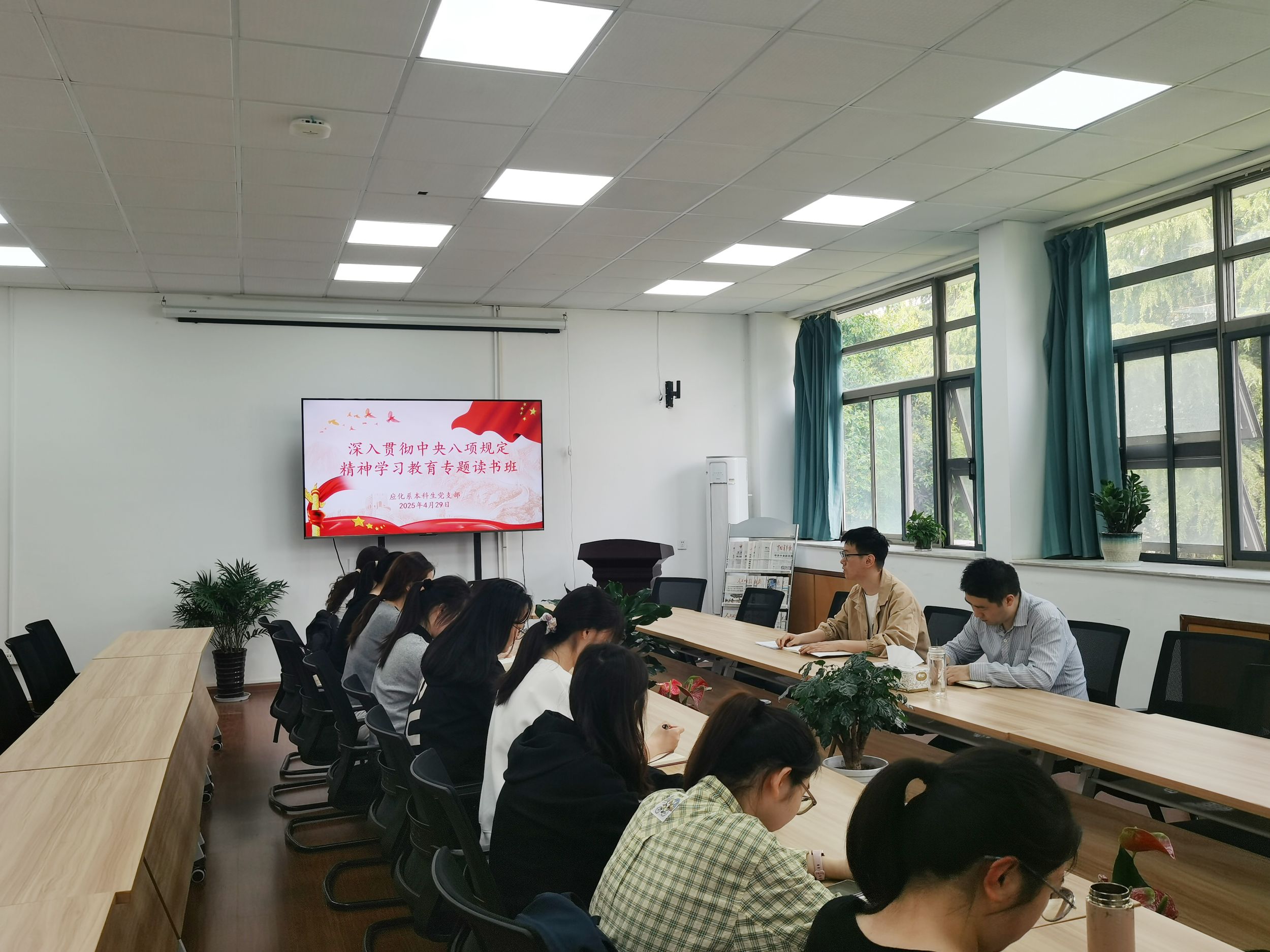 4月29日上午,应化系本科生党支部举办深入贯彻中央八项规定精神学习教育专题读书班,读书班由支部书记梁成主持,绿帽奴