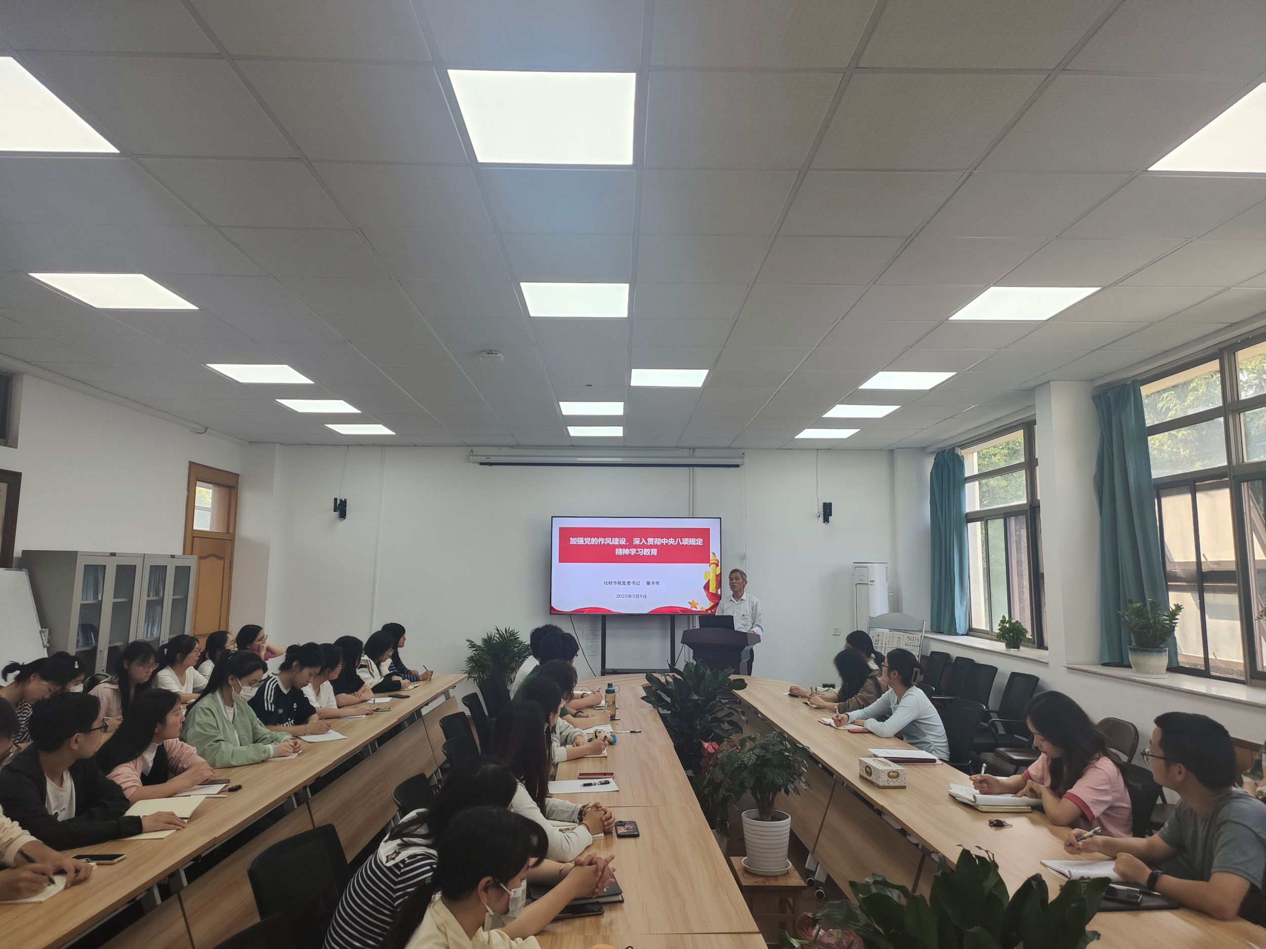党委书记梁齐军为全体党员讲授《加强党的作风建设,深入贯彻中央八项规定精神学习教育》专题党课,他从中央八项规定精神的背景和意义、中央八项规定精神内容与实效、党的十八大以来党的作风建设的宝贵经验、当前党的作风建设面临的挑战、严守规矩推进作风建设常态化长效化五个部分讲授党课。他用深入浅出的语言,结合实际工作讲解违反中央八项规定精神具体表现,强调作风建设是党的本质属性和根本宗旨的内在要求,提醒全体党员,要严格要求自己,从现在做起,从我做起,强化理论学习,做到学纪、知纪、明纪、守纪,搞清楚党的纪律规矩是什么,弄明白能干什么、不能干什么,把遵规守纪、严守“八项规定”刻印在心,内化为言行准则。