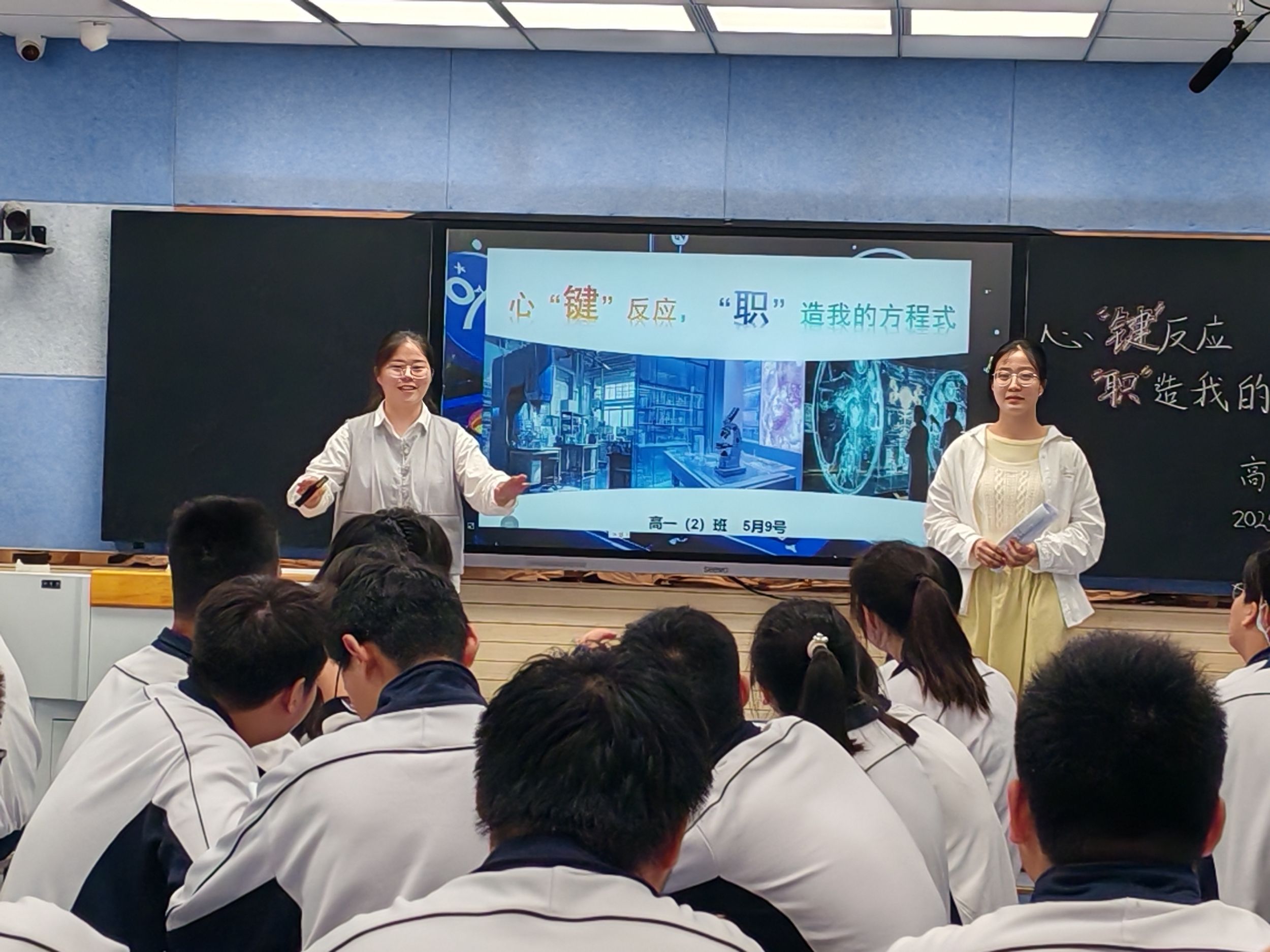 5月8日,实习生吴玉凡、金雨欣策划的《心“键”未来,“职”造化学方程式》主题班会引发热烈反响。班会巧妙融合化学原理与职业规划,运用AI技术模拟职业发展路径:以“催化剂效应”类比个人能力提升对职业目标的加速作用,通过“能量跃迁”理论阐释职业进阶的阶段性特征。学生借助即梦Al生成个性化职业画像,可视化呈现未来可能性。活动打破传统班会模式,以科技赋能德育,引导学生从学科视角思考人生规划,获师生一致好评。