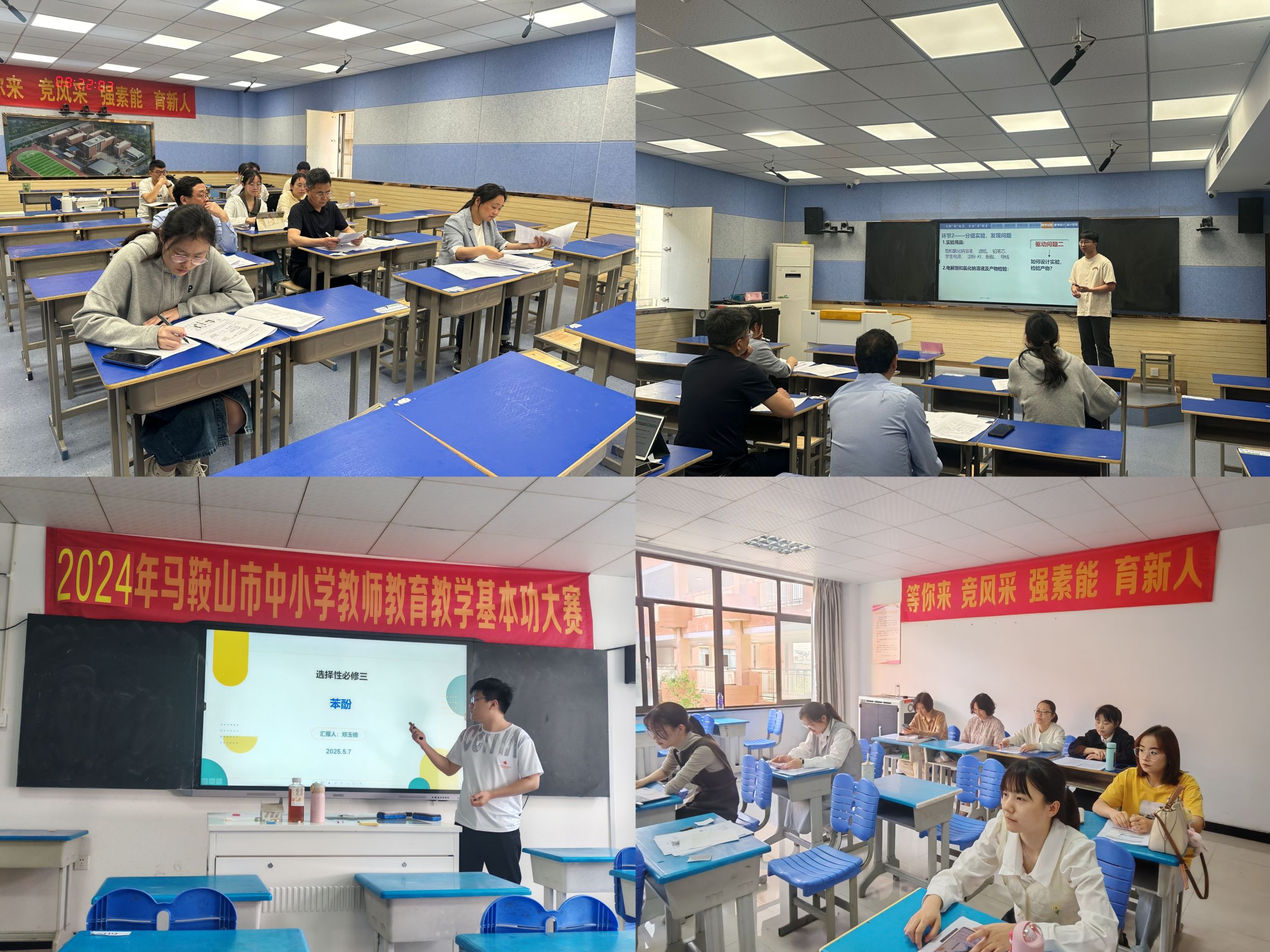 5月7日,马鞍山二十二中学举办实习生说课比赛,围绕化学学科两大核心主题《苯酚》与《电解池》分两组同步展开。化学专业实习生紧扣新课标要求,结合多媒体课件与实验设计,从教学目标、学情分析、教学策略等多维度呈现教学设计。每组比赛分别由4位资深教师担任评委,依据教学设计创新性、课堂互动性、语言表达等维度进行综合评分。选手通过跨组观摩与组内互评,实现教学理念的碰撞与能力的自我提升,为教学实践奠定扎实基础。