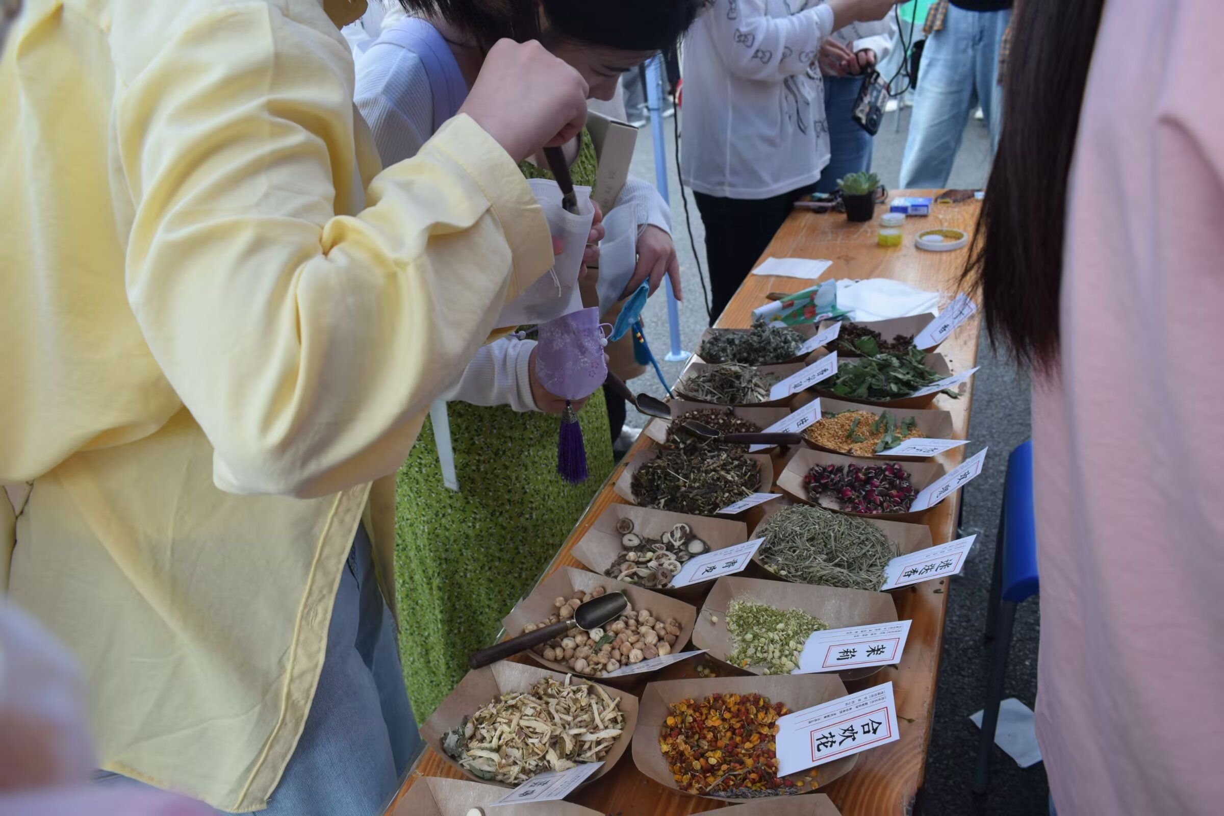 发展辅导站精心策划多项特色传统活动,以传统养生与化学知识融合为亮点,设立“‘艾’护心灵,锤走压力”艾叶锤手工制作、“草本织韵,囊藏静气”香囊调配两大体验区。参与者在缠绕艾绒、调配草药的过程中,感受指尖与草木的对话,在传统技艺中释放压力、舒缓身心。现场同步设置抽奖环节,手持风扇、绿植盆栽罐头等奖品引发热烈互动,集章兑换机制进一步增强了活动趣味性。