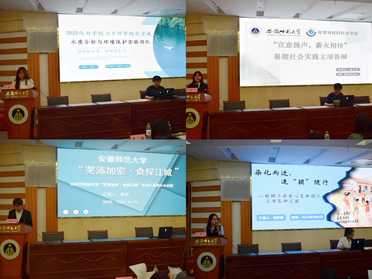 参与本次答辩立项答辩会议的共有26支团队,包含科普宣讲、爱心支教、志愿服务、理论宣讲、实践调研等主题。各团队负责人从实践背景、实践目的、团队情况、具体计划、预期目标、安全保障等方面对实践项目进行了详细介绍。“芜添加密,食探江城”团队计划与当地大型企业协调合作,纠正大众对于生活知识的误区,促进形成科学精神和求真务实的社会风气。“化心科普,智绘江城”社会实践团队设计了多元化的科普形式,让化学科普有趣、有效、深入人心。评委老师从团队选题可行性、人员配置、财务预算、实践地点等各方面着手,对各组汇报情况进行了针对性的提问与点评,并提出建设性的修改意见。