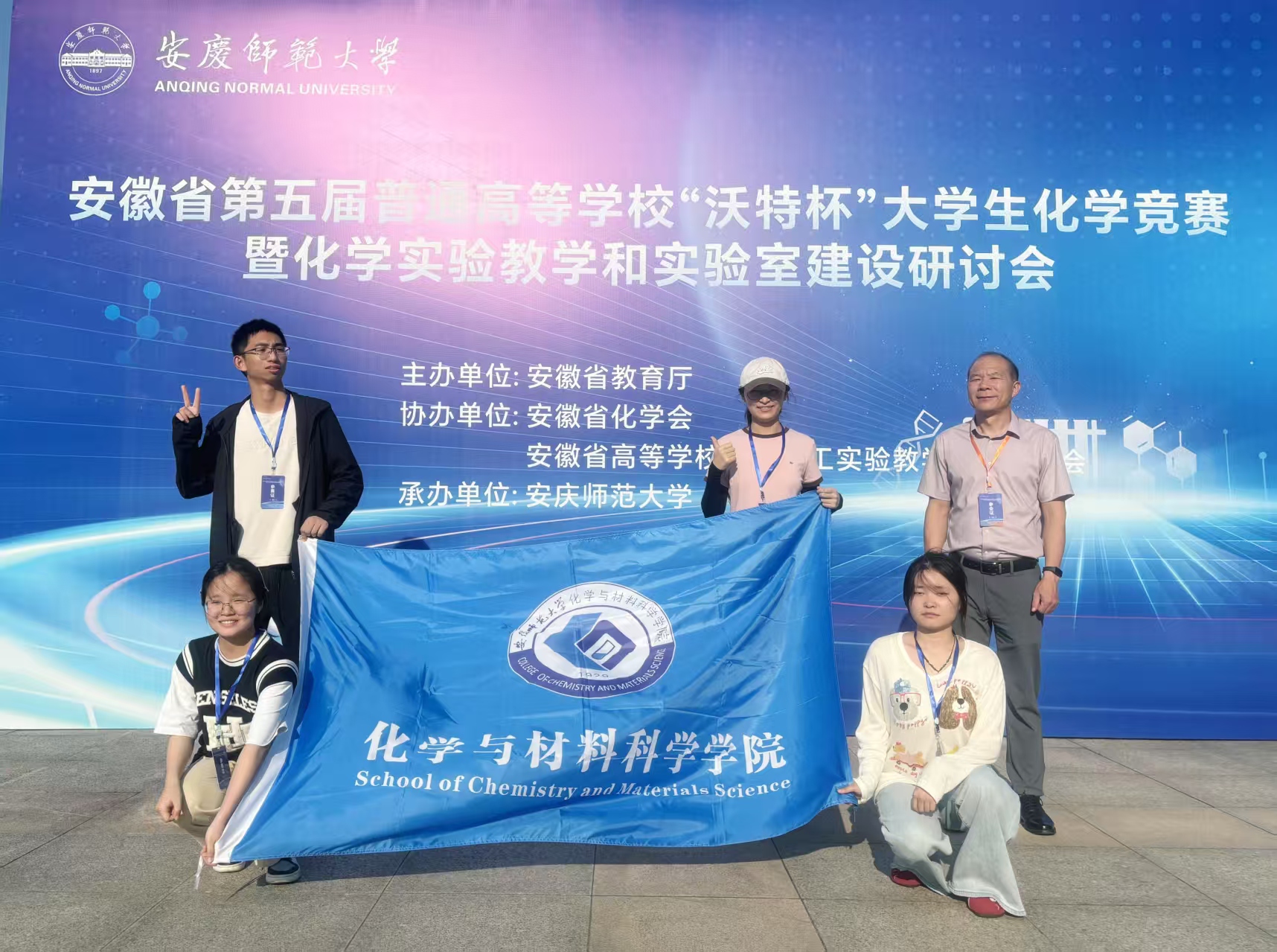2025年7月18日-20日,由安徽省教育厅主办,安徽省化学会、安徽省高等学校化学化工实验教学中心联席会协办,安庆师范大学承办的安徽省第五届高等学校大学生化学竞赛决赛阶段比赛成功举行。我院选派4名同学参加决赛,获得省级一等奖1项、省级二等奖2项的优异成绩。