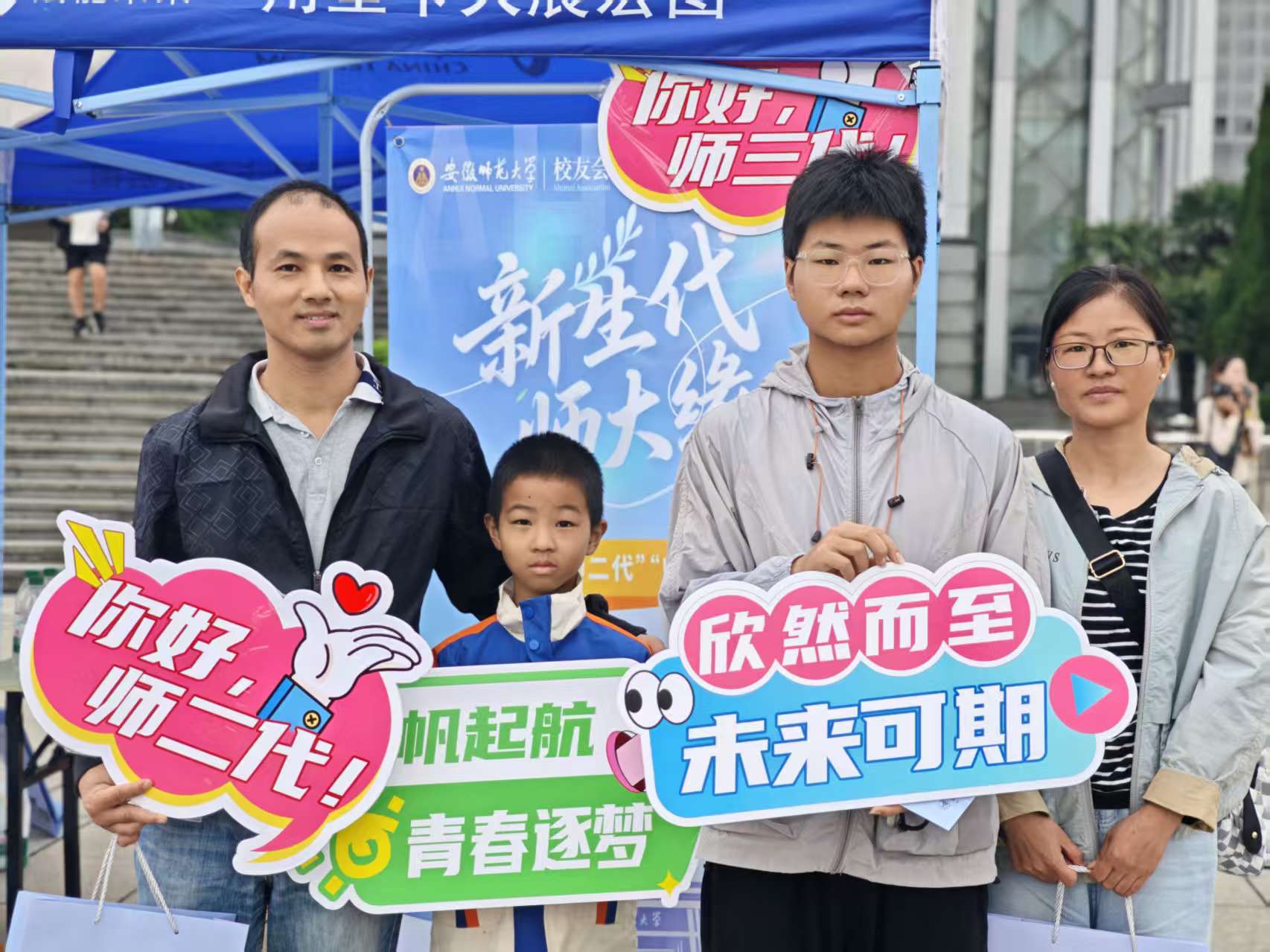 迎新现场,共同拥有一个母校的家长与学生站在打卡点前合影留念,“化材人”的教育接力继续传递,“师二代”背后的成长故事温馨动人,未来将会书写更多崭新的篇章。