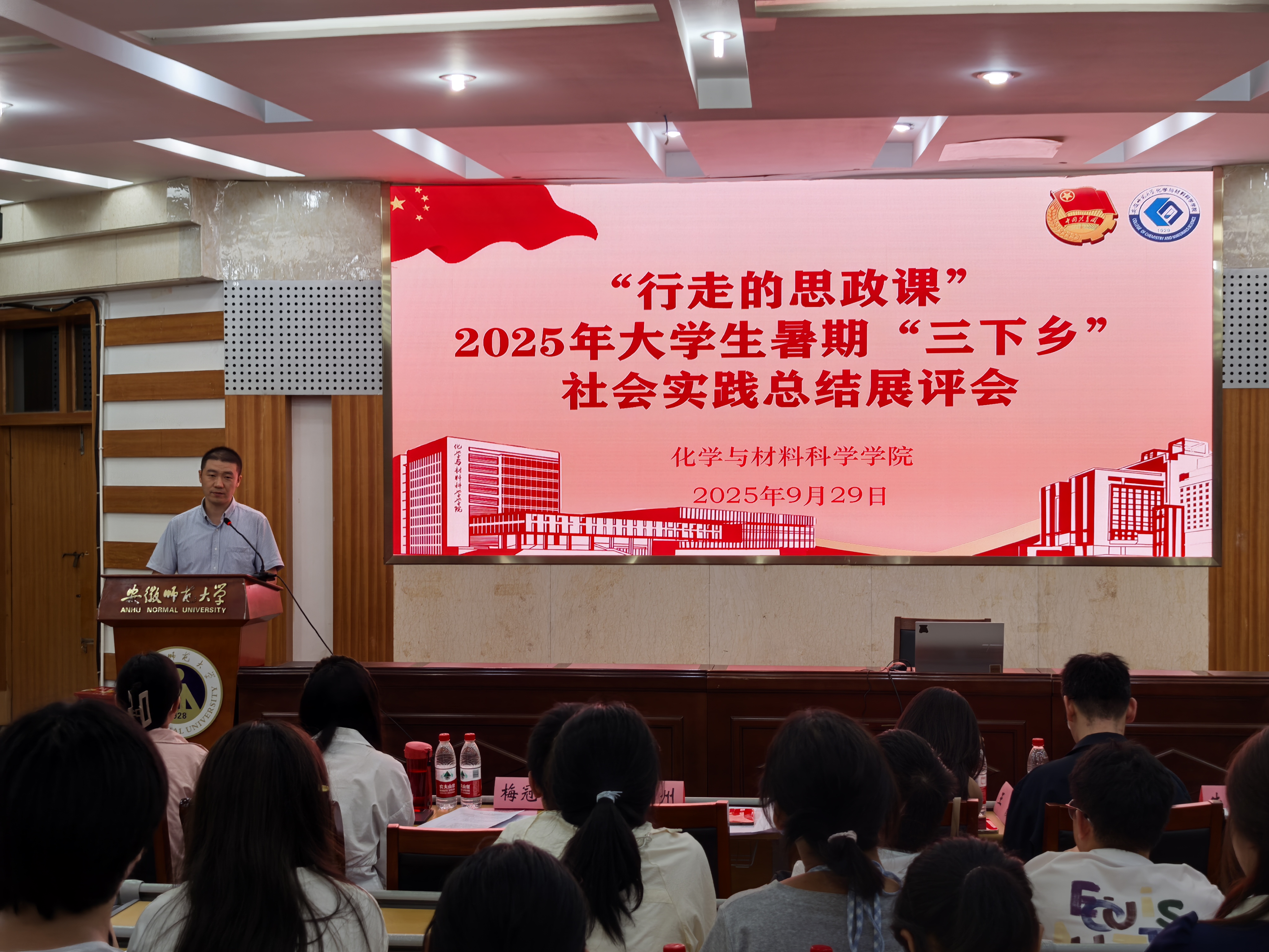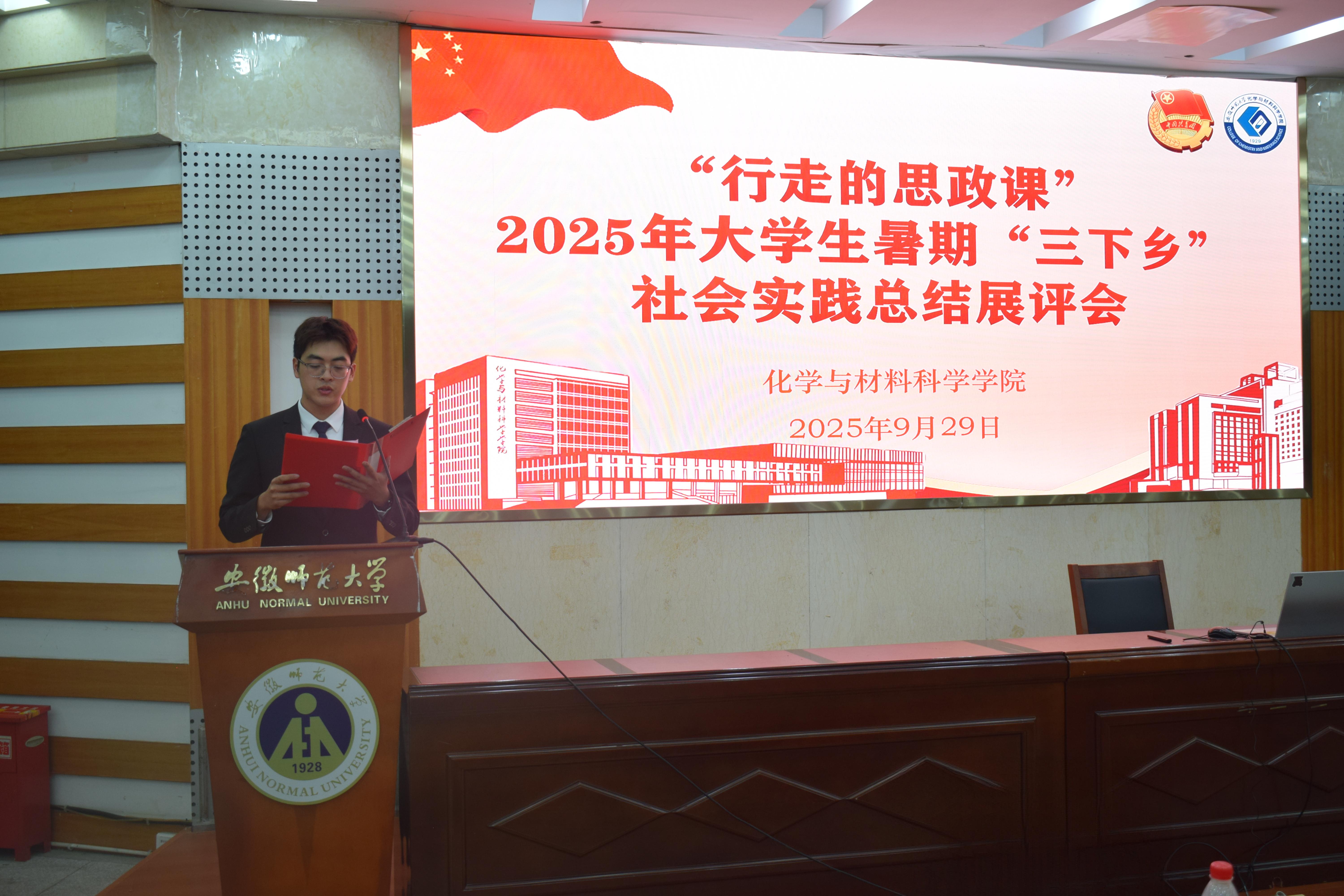 党委副书记李古州、团委书记梅冠东、团委副书记王霞、全体专兼职辅导员、2025级学生代表和暑期社会实践团队代表参会。展评会由2024级化师专业王利同学主持。