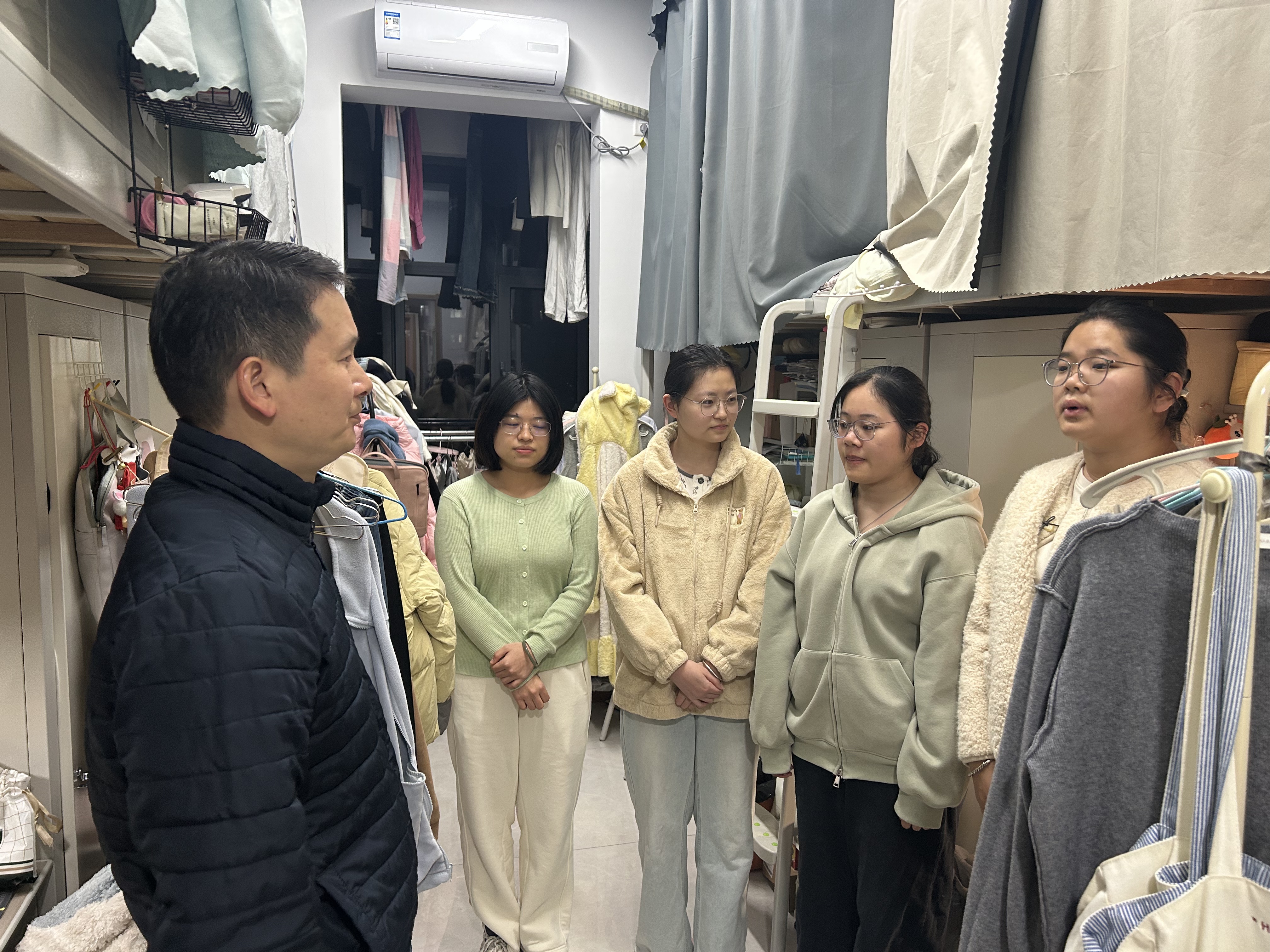 领导班子深入实验室和学生宿舍,实地查看安全卫生状况,并与在场师生交流,了解实际困难和需求。