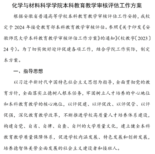 坚持以习近平新时代中国特色社会主义思想为指导,坚持“以评促建、以评促改、以评促督、以评促强”工作方针和“立德树人、学生中心、问题导向、持续改进”评估理念,对照审核评估指标体系,全面评价本科教育教学工作成效,不断凝练办学特色与亮点,深入查摆问题与不足,科学制定整改方案与措施,着力提升本科教育教学质量。