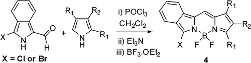 19) Yu, C.;Jiao, L.*; Tan, X.; Wang, J.; Xu, Y.; Wu, Y.; Yang, G.; Wang, Z.; Hao, E.* Acid Promoteded Straightforward Synthesis of Pyrroledipyrromethenes.Angew. Chem. Int. Ed.2012,51, 7688-7691. []
