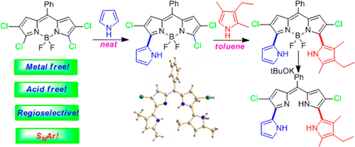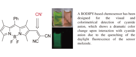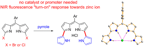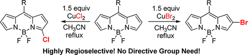2) Zhou, X.; Yu, C.; Feng, Z.; Yu, Y.; Wang, J.; Hao, E.; Wei, Y.; Mu, X.;Jiao, L.*Highly Regioselective α-Chlorination of the BODIPY Chromophore with Copper(II) Chloride.Organic Letters,2015,17, 4632-4635.[]